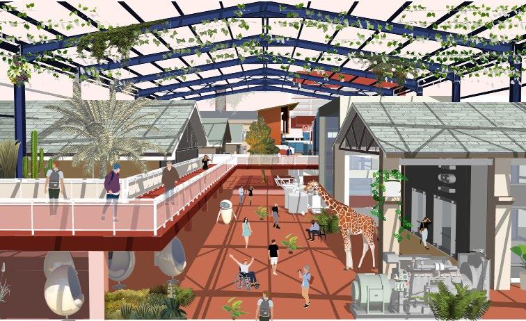 The vertiport and ferry hall in Mission Bay, San Francisco, envisions dynamic urban space that merges transportation with social interaction. Designed as both an urban plaza and a regional transportation hub, the project fosters community engagement while addressing future mobility needs. By integrating seamless connections between air, sea, and land travel, the design promotes sustainable transport solutions.If serves as a vibrant social hub, blending funcfionality with a sense of place and enhancing Mission Bay's urban fabric.