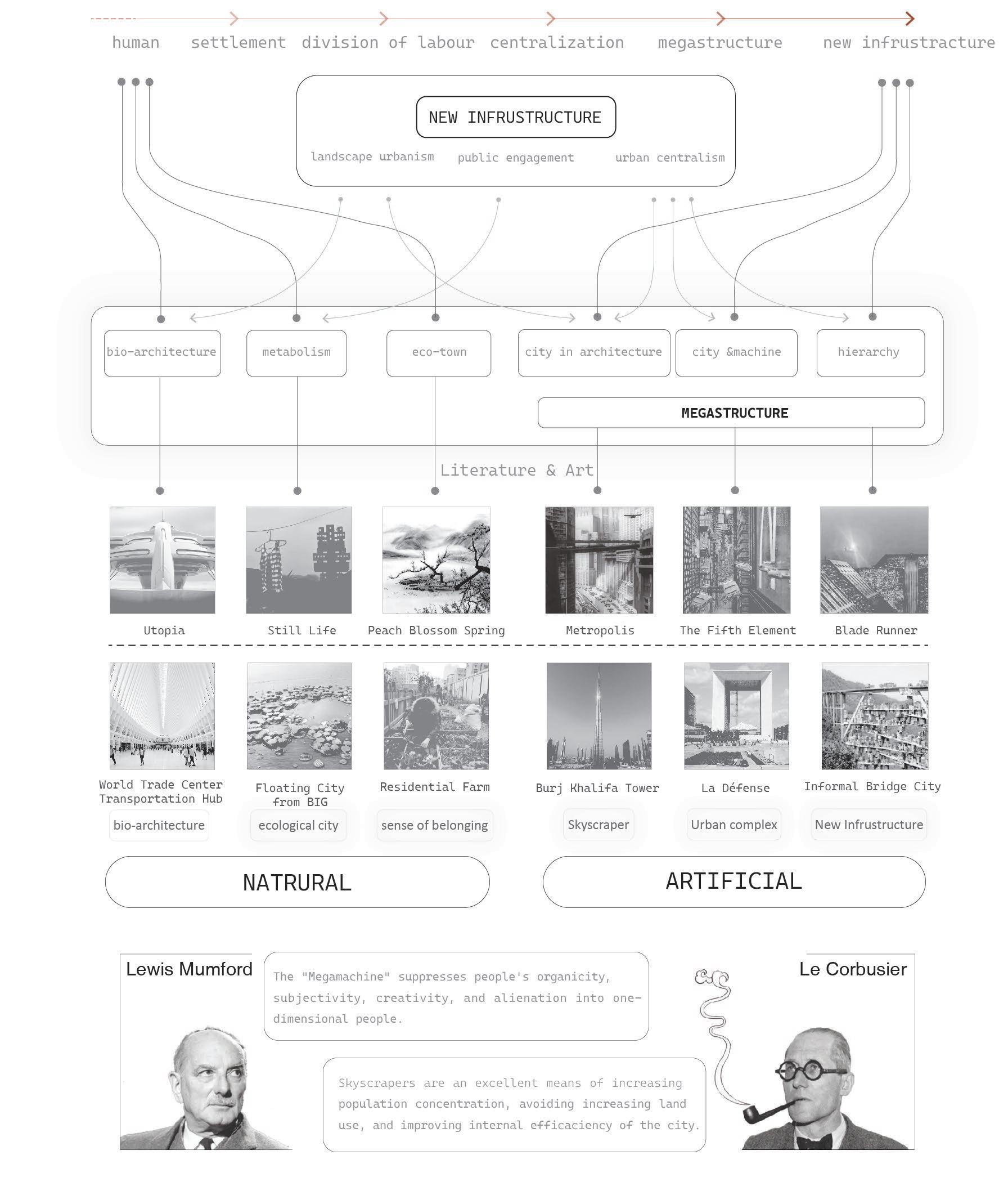 Embedded in a historic district, the murmuration-liked walking system has been created in the Bishizhou community in Shenzhen. Since most of the buildings are demolished and the area lacks of vigor, we try to build another system recreating the area in this high-density district, whcih is a walkable system connecting beyond roofs, supplementing the infrastructure and providing leisure spaces for local people and tourists.