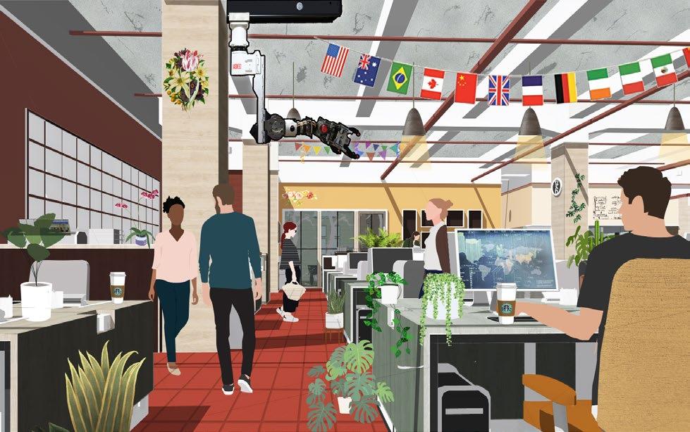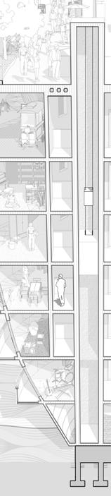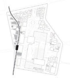 The warehouses are transformed to residential building, which provides housing for both workers and tourists. The reorganized train route goes over the factory for commuting and sightseeing.