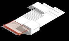 The composition of the roof structure consists of two primary parts. The first is the linear core, made up of segmented core volumes connected by a truss system. This truss system not only reinforces the linear core but also serves as a structural support for the skylight, allowing natural light to filter into the space below. Flanking both sides of the core are integrated gutters designed to collect rainwater efficiently, contributing to the building’s sustainable water management strategy.