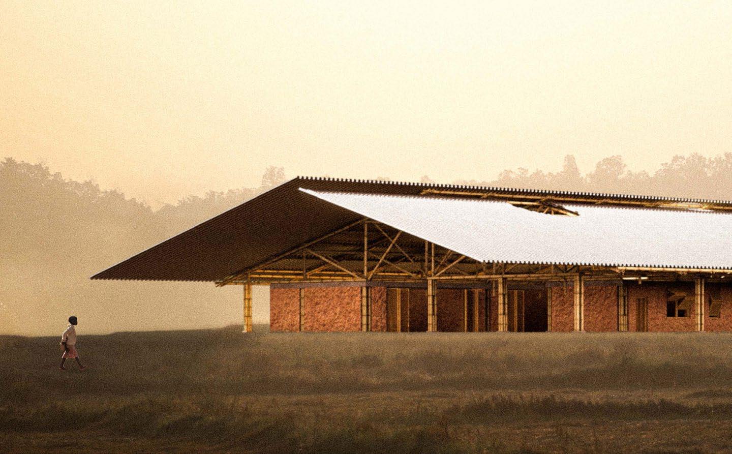 This project incorporates key elements of umbrella. THe metal roof sheet, akin to the umbrella's canopy, provides protection to the indoor spaces, while the truss system supporing the roof emulates the stability and strength of an umbrella's framework. The trees situated inthe central corridor of the building represent the umbrella handle, signifying stability and offering students and engaging and well-lit activity space.