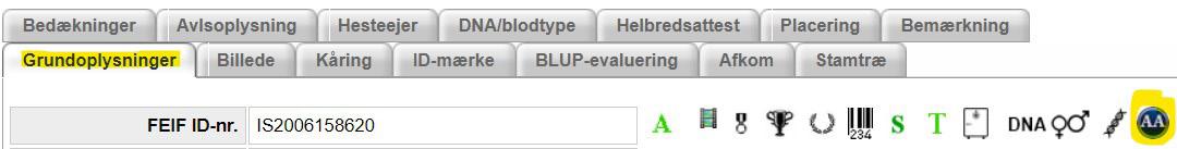 Under “Grundoplysninger” kan man se om hestens genotype er CA = 4-gænger eller AA = 5-gænger.