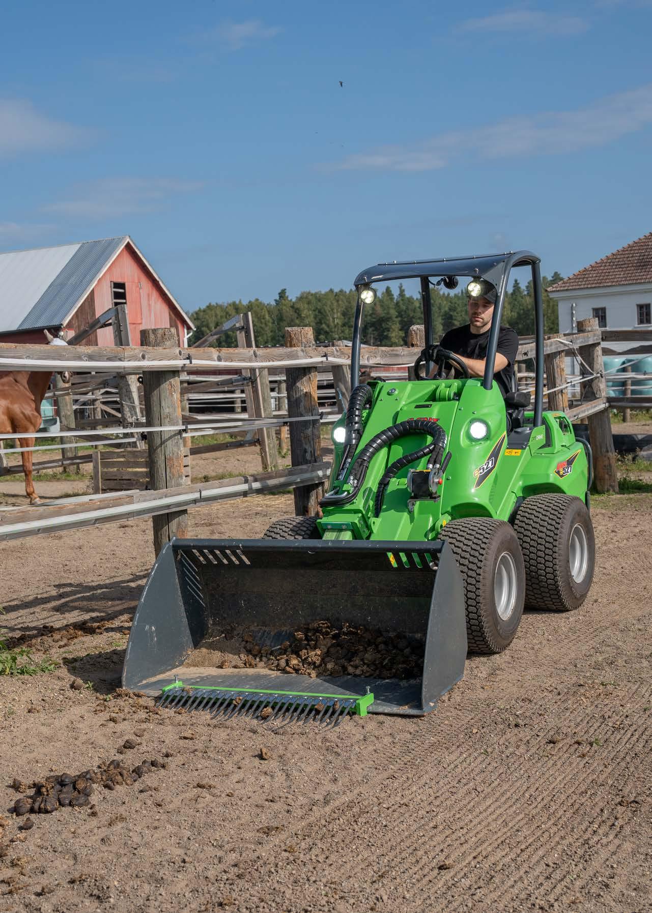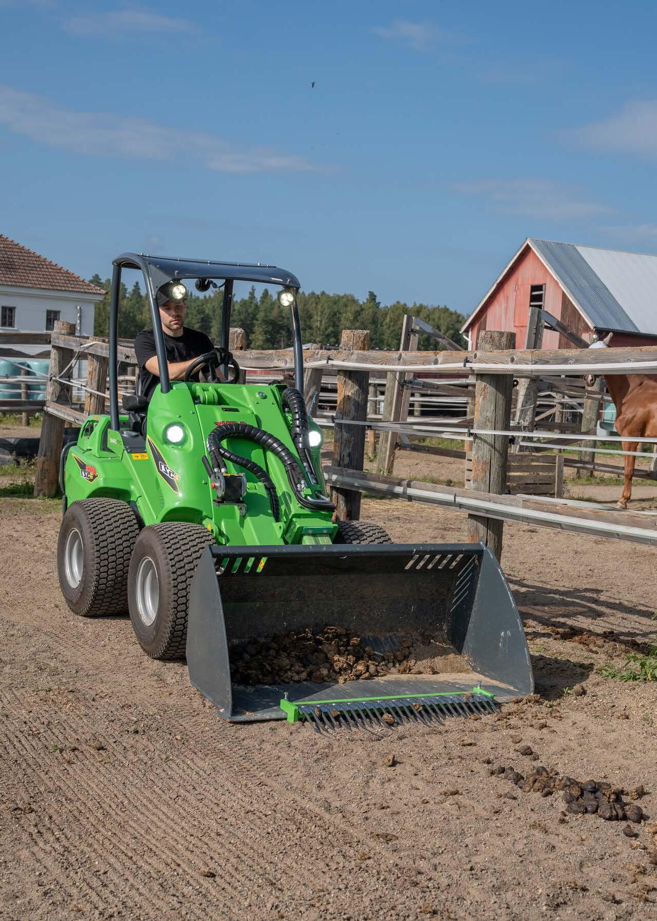 Avant e727 er en elektrisk minilæsser med høj løftekapacitet på 1.600 kg, støjsvag drift, lang driftstid og hurtig
