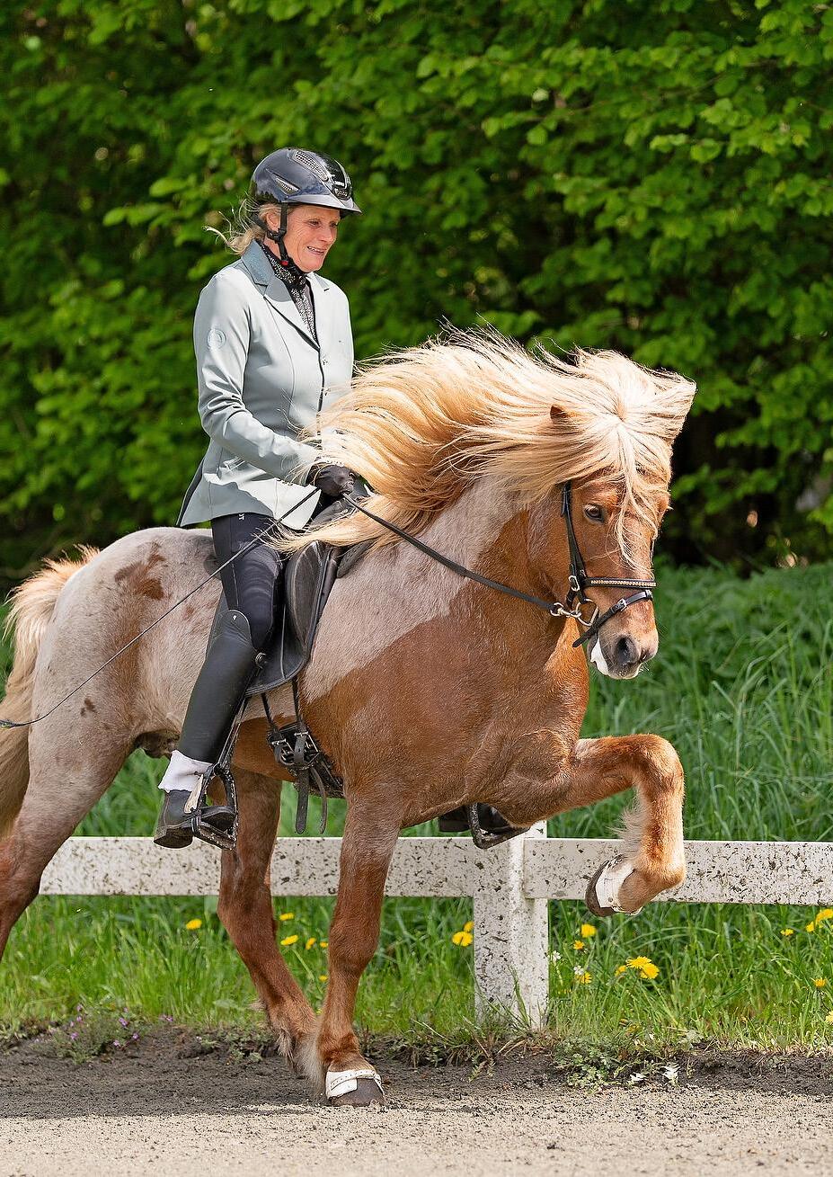 vælger hingst. Først og fremmest en god tølt, gerne god arbejdstølt, - rummelige bevægelser, godt løftog så må de gerne kunne “sætte” sig i tølten, hvilket der ikke er så mange, der virkelig kan. Desuden vil jeg gerne have, at hingsten er velrejst med en flot form under rytter. Man skal være ærlig omkring “mangler” ved hoppen - find hingsten, der supplerer hende godt. Og så er det altid vigtigt med en god mavefornemmelse.