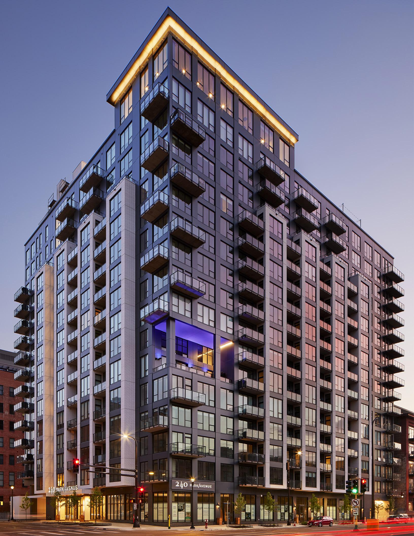 240 Park Avenue is new construction of a 17-story mixeduse, retail and multi-family market-rate housing residential development, with a building footprint of approximately 30,000 SF, located in Minneapolis, Minnesota; including belowgrade parking, landscape amenities and site improvements.