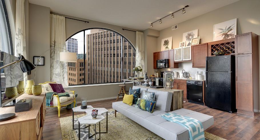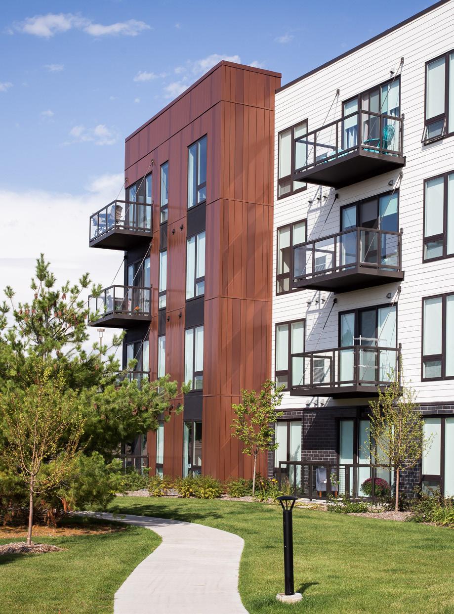 The LEED Silver® Penfield is a six-story building with 254 marketrate apartments, a one-story 30,000 sf Lund’s grocery store on the first floor, and approximately 330 enclosed parking spaces. The strong downtown employment base was a driving force in the development of this project. The Penfield is within walking distance to all government agency buildings. In addition, the building is also situated one block from the new LRT Green Line.