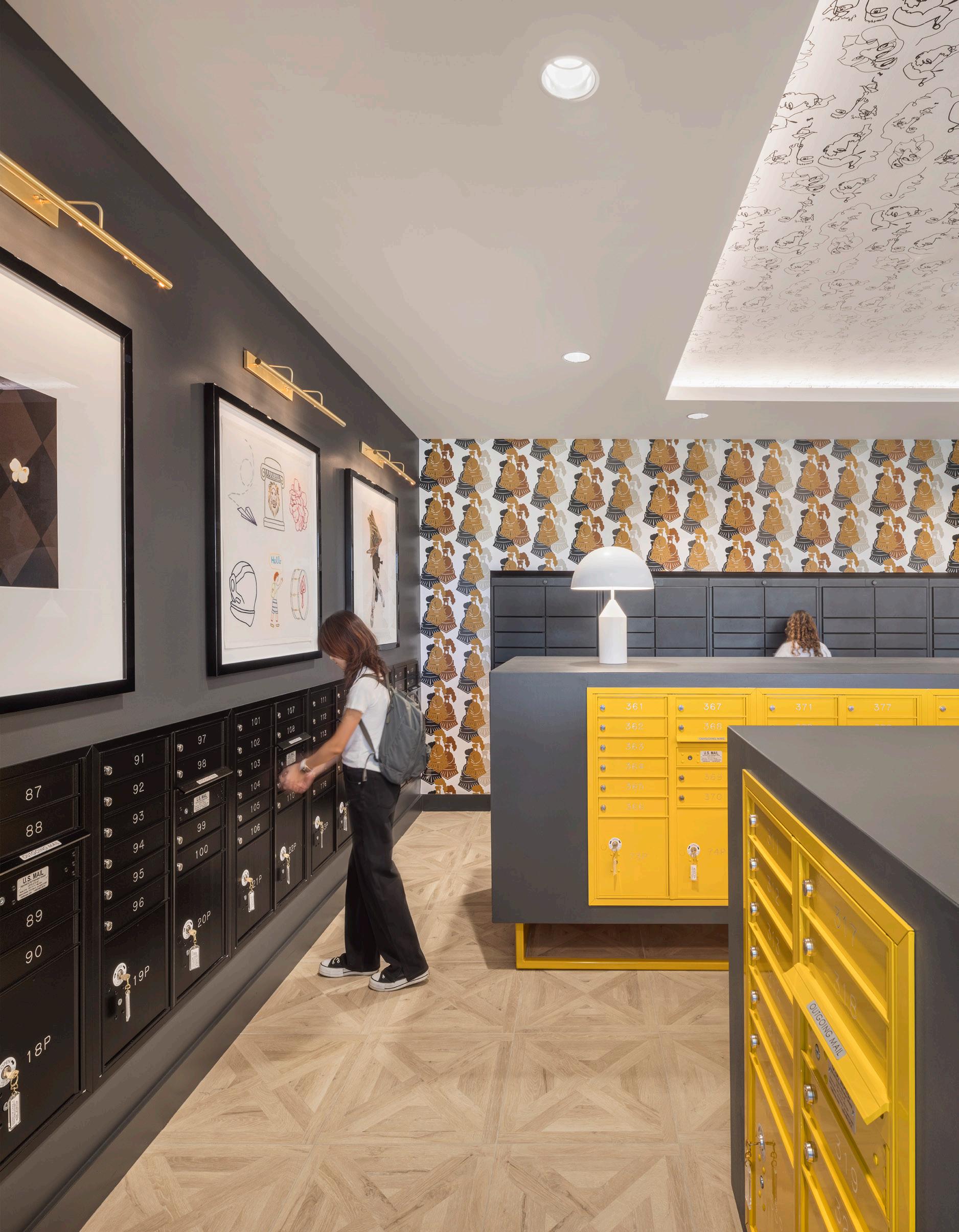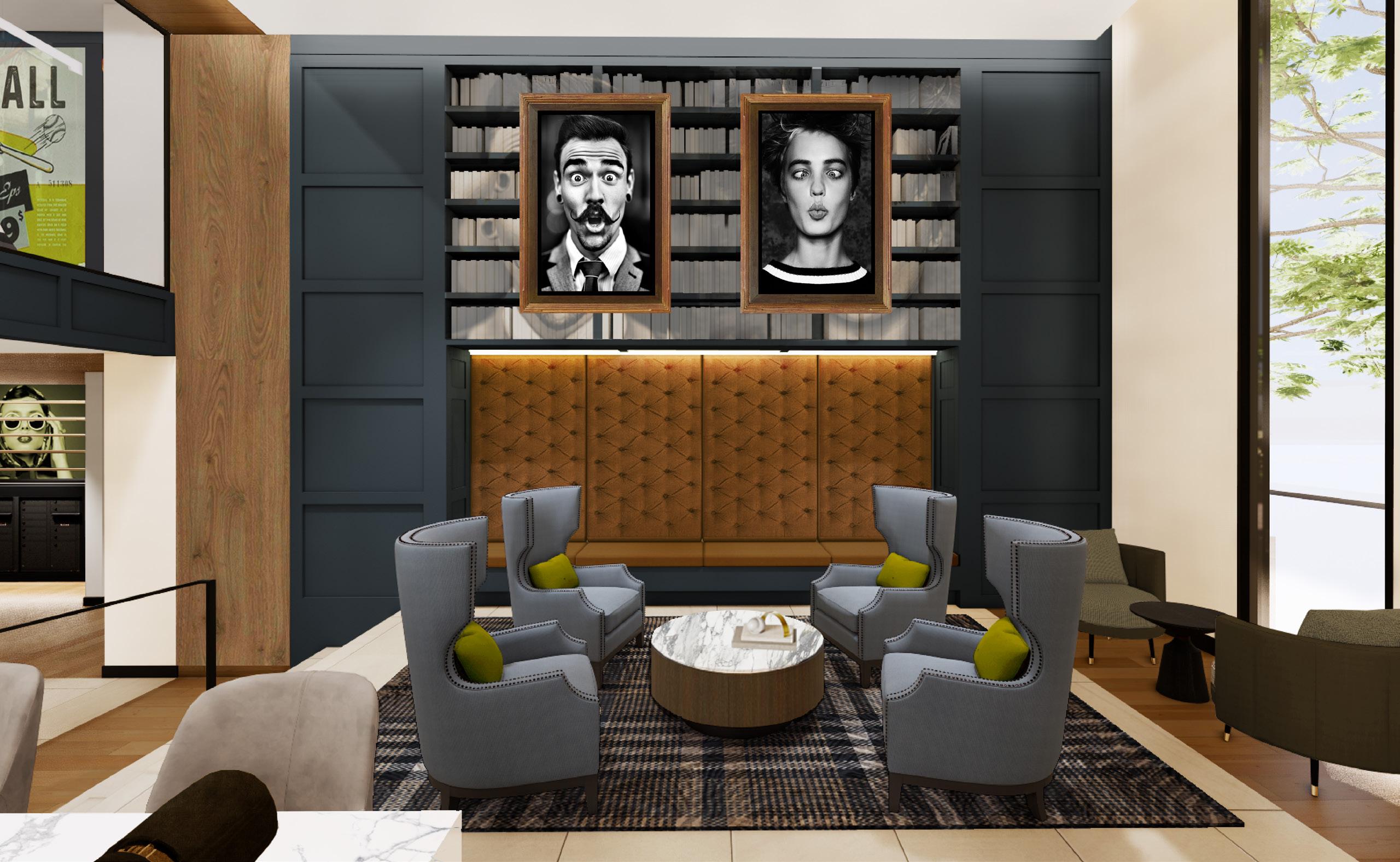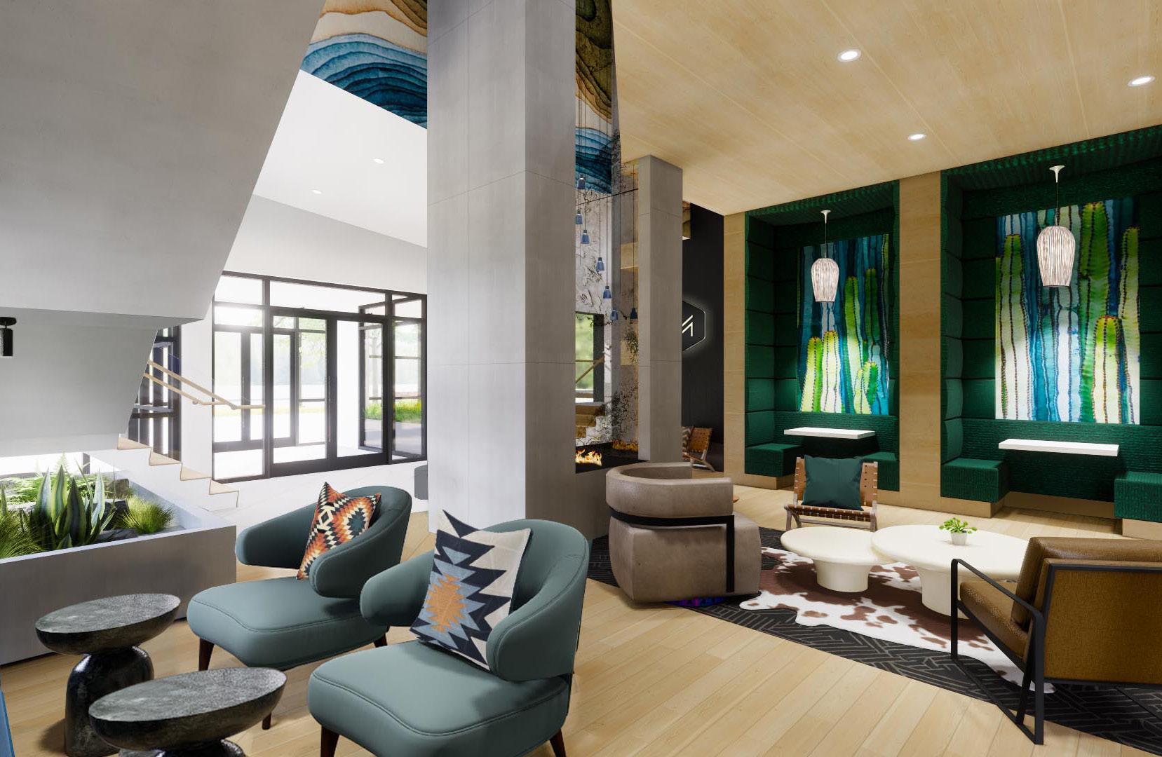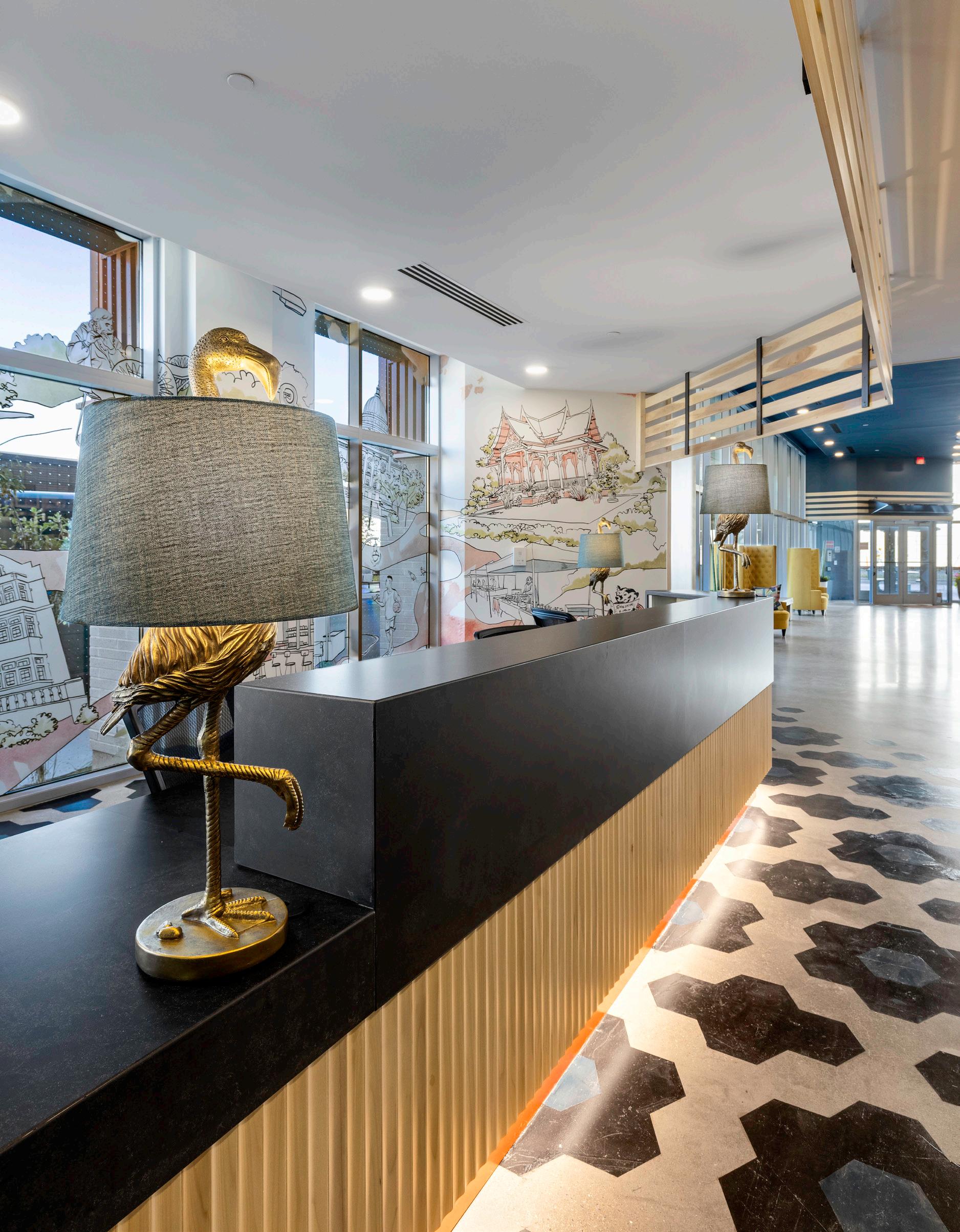 Residents have access to a jam lounge, music practice rooms, a golf simulator, pet spa, 24/7 fitness center, hammock lounge and private study lounges. The project also includes pedestrian connections to the existing 6-story parking garage, which will undergo aesthetic updates and repairs.