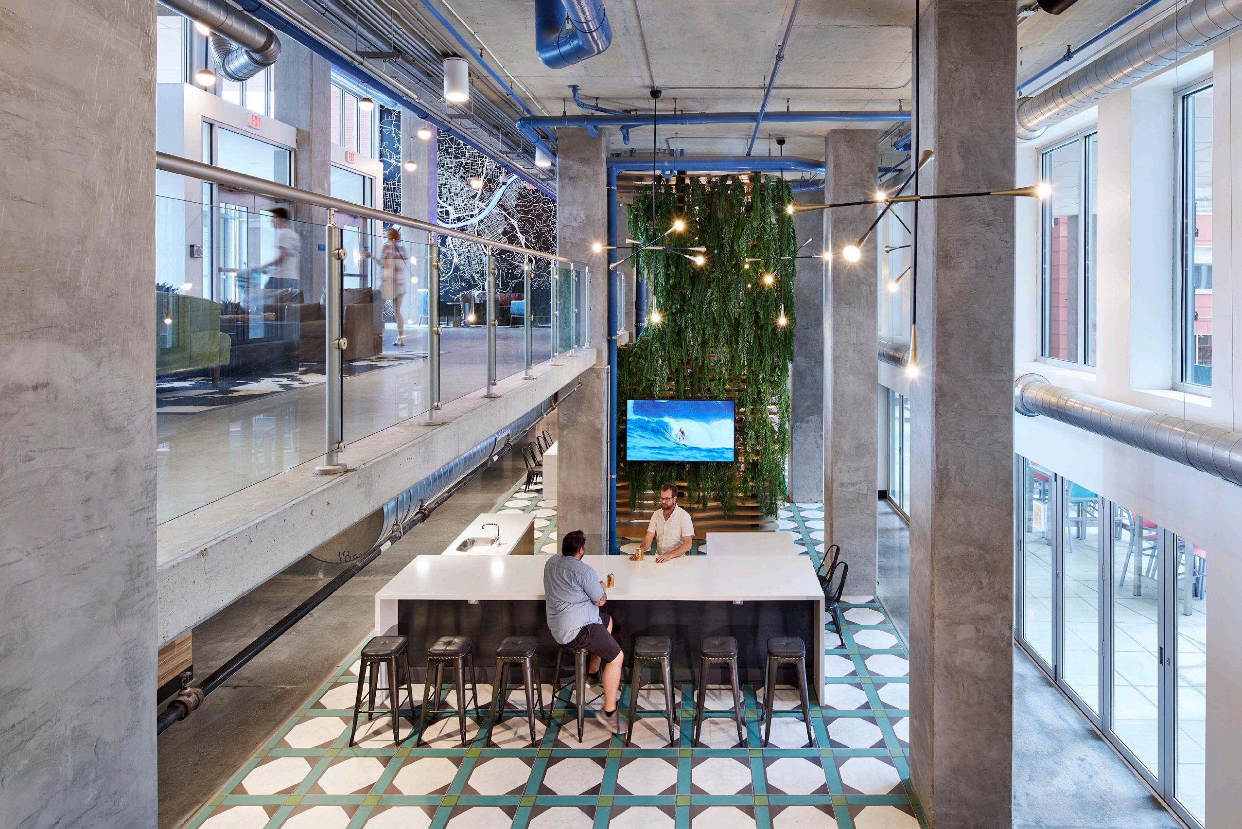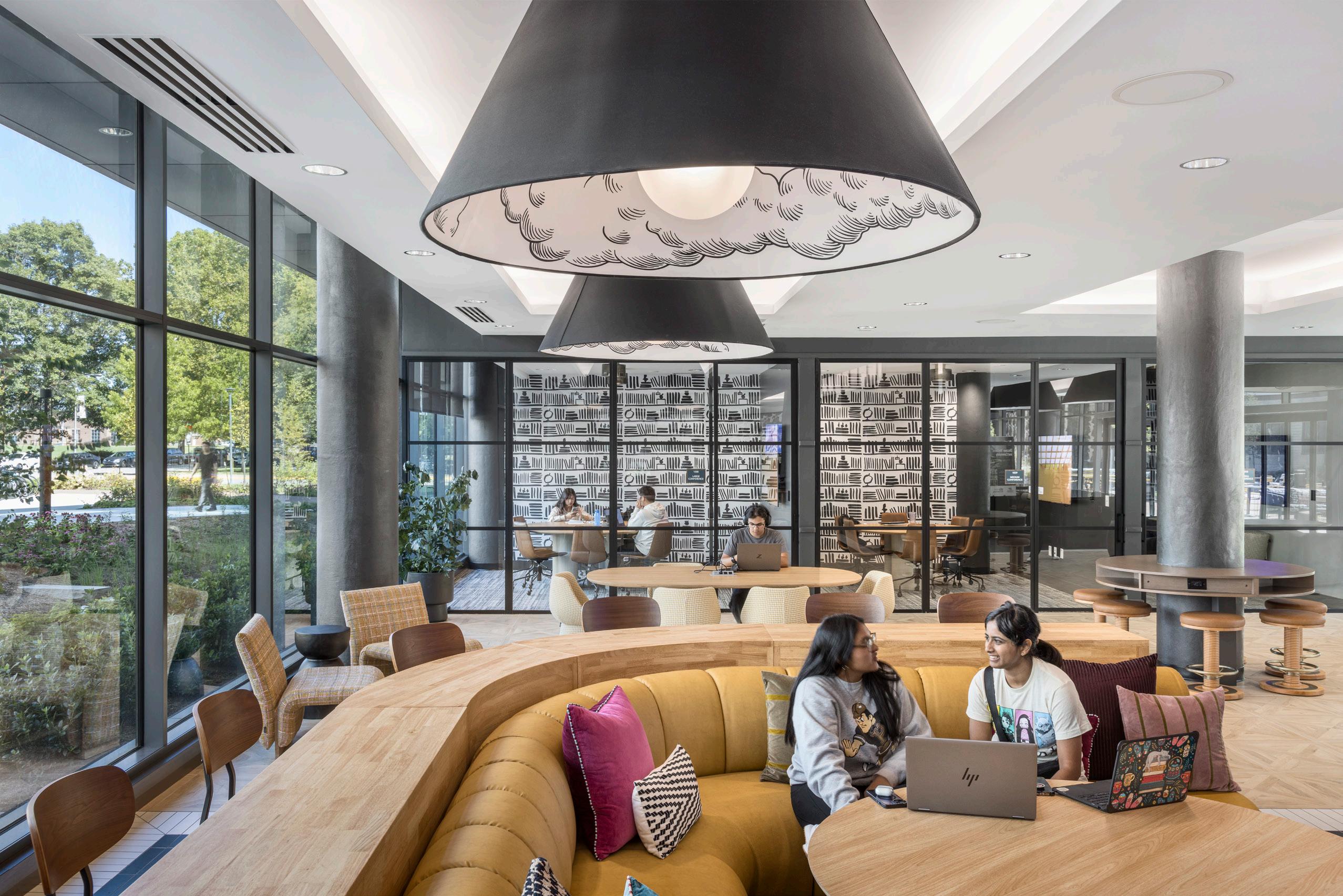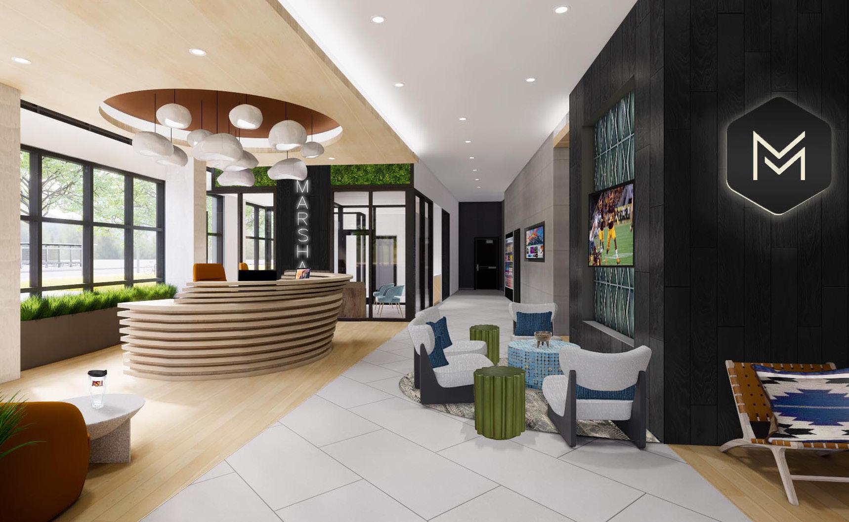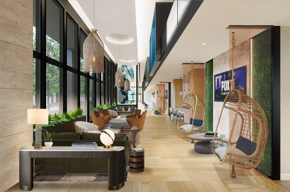 Residents have access to a jam lounge, music practice rooms, a golf simulator, pet spa, 24/7 fitness center, hammock lounge and private study lounges. The project also includes pedestrian connections to the existing 6-story parking garage, which will undergo aesthetic updates and repairs.
