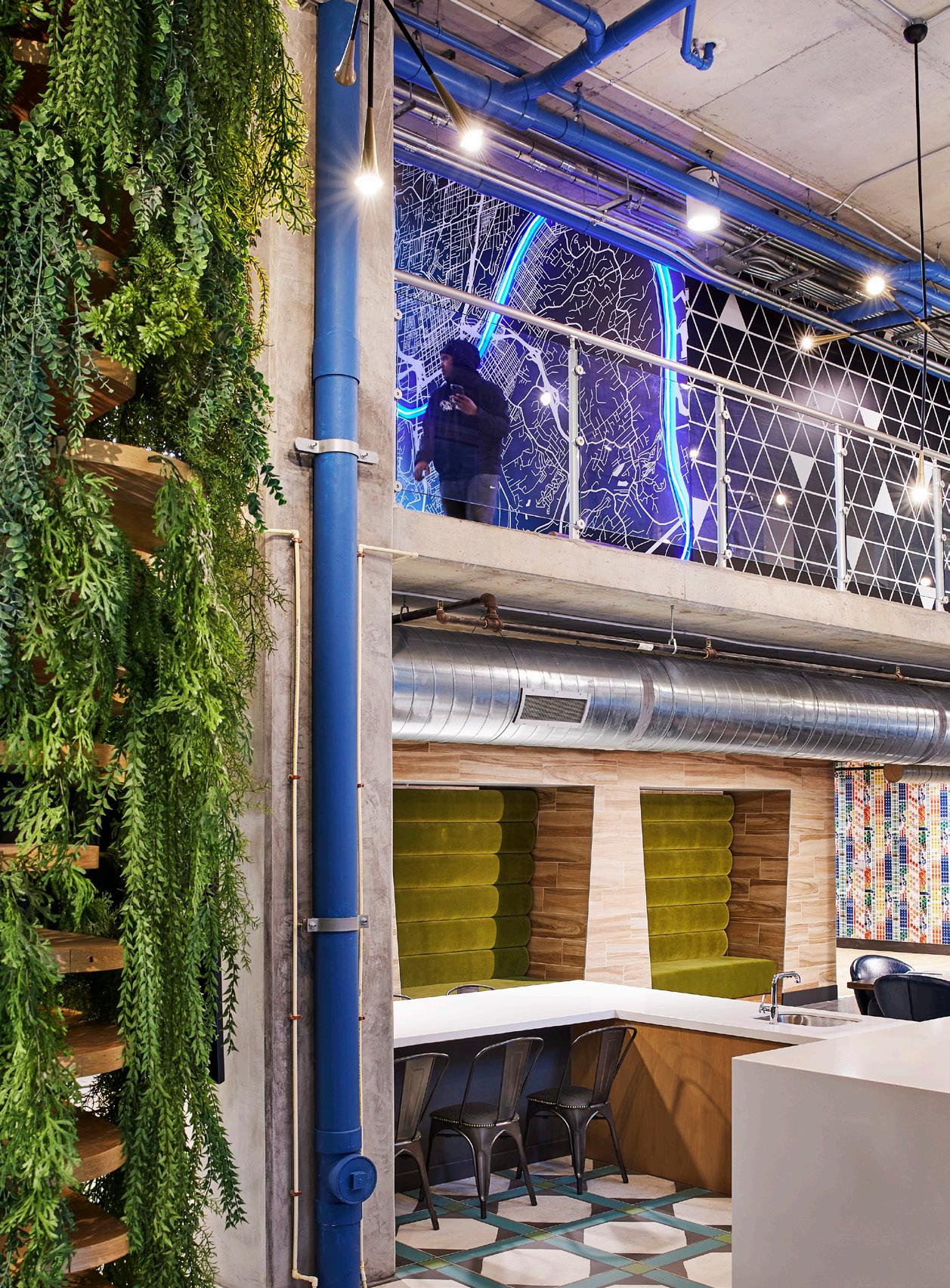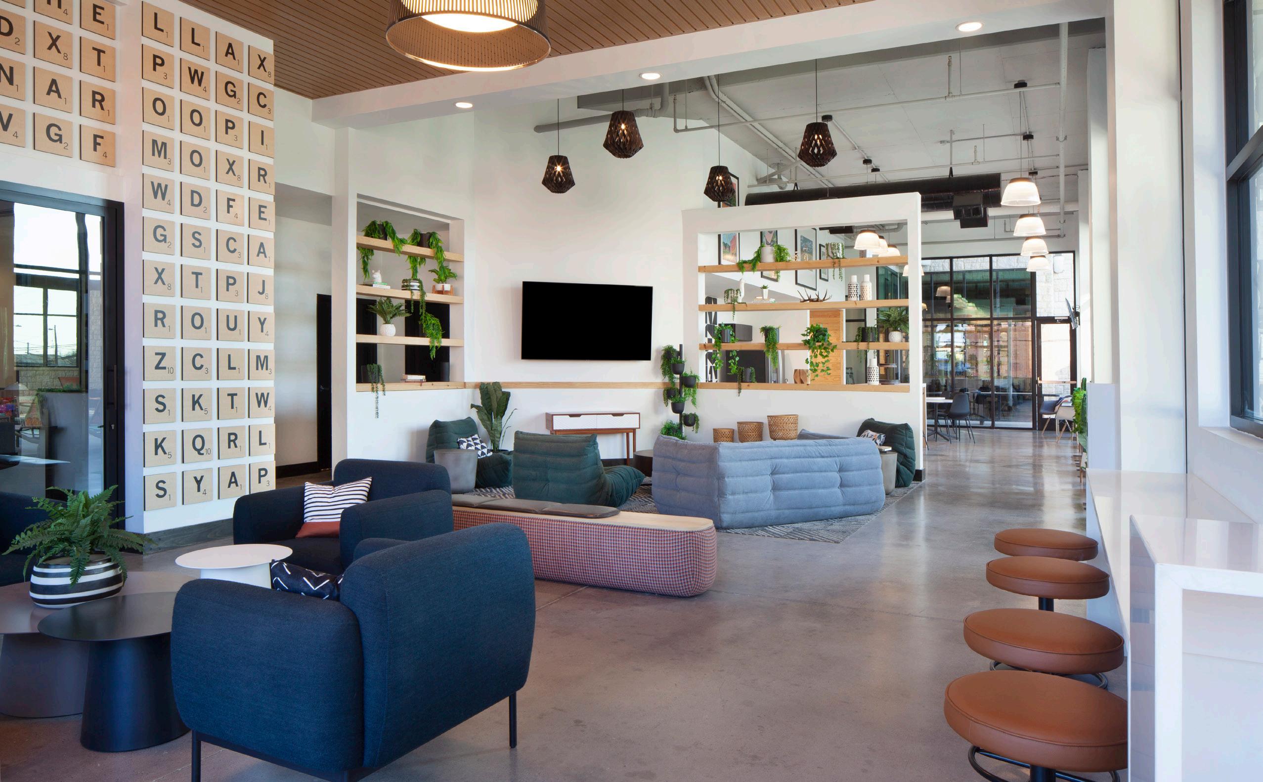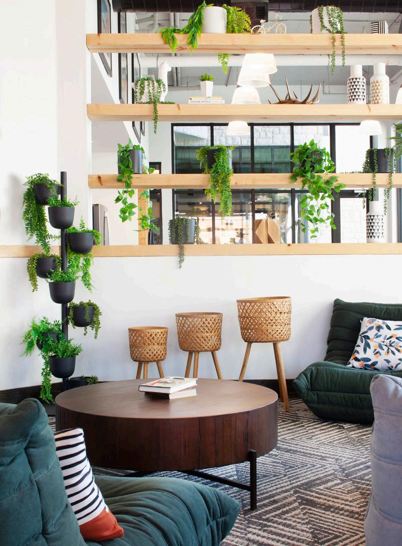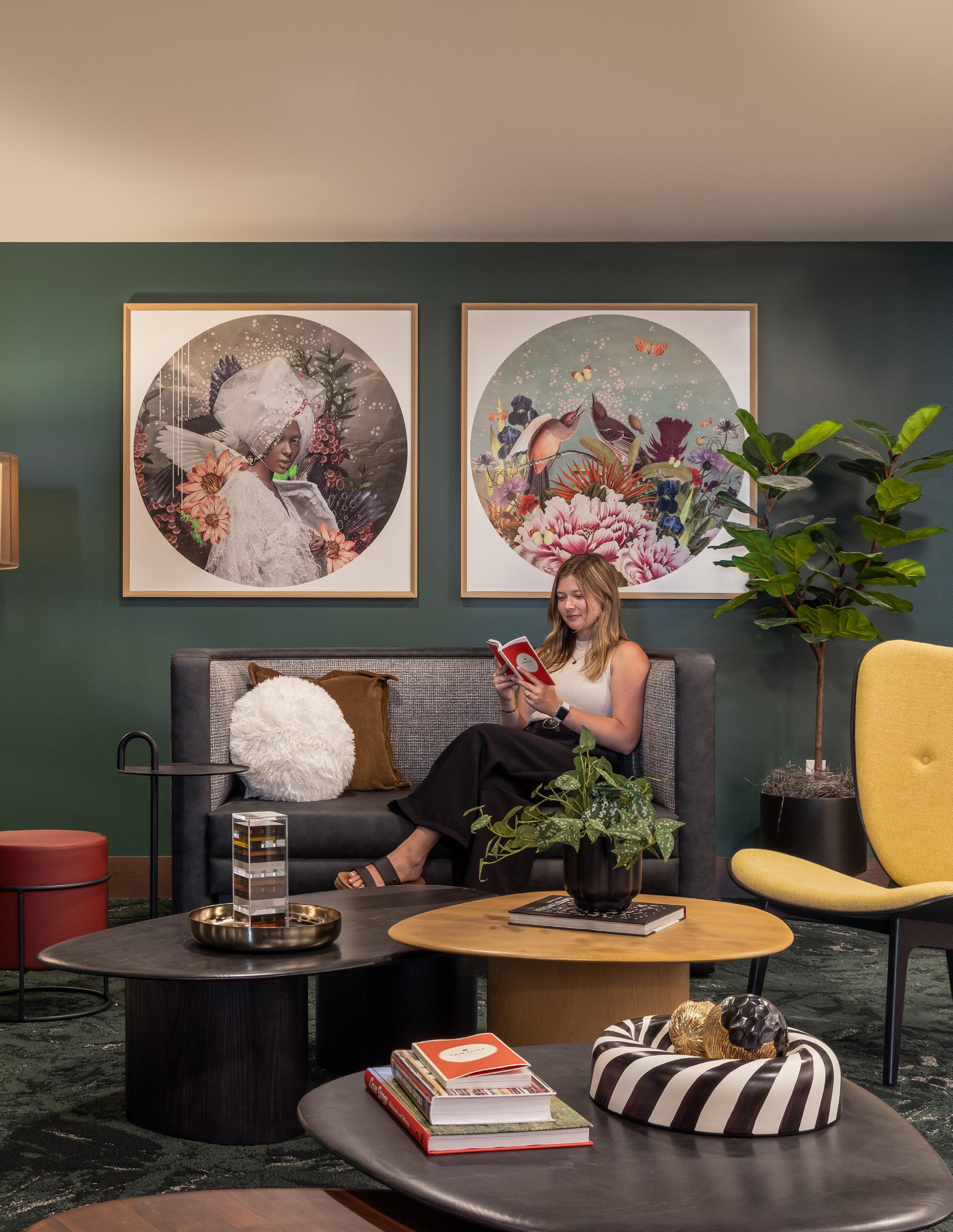 Students at Georgia Southern University reside in colorful cottages that dot this vibrant housing development. The existing clubhouse, however, was drab, dated, and in need of added vitality. The first impression starts here, and our design team went wild with this renovation; taking inspiration from Southern’s grand live oaks, lush lawns, and colorful botanical gardens. Residents enter through a colorful portal, greenery climbs the walls and dangles from above and natural woven lighting is strung from the ceiling, swinging near the windows. The two-story lobby connector space is where all programs converge; a central watering hole for residents with the leasing office and café accessed through open garage doors allowing the spaces to flow into one another. A fitness space (cardio, weight room, and yoga), study lounge, and game room round out the space types, and the punchy patterns, leafy motifs, and animal prints create an energizing quality to this clubhouse kingdom.