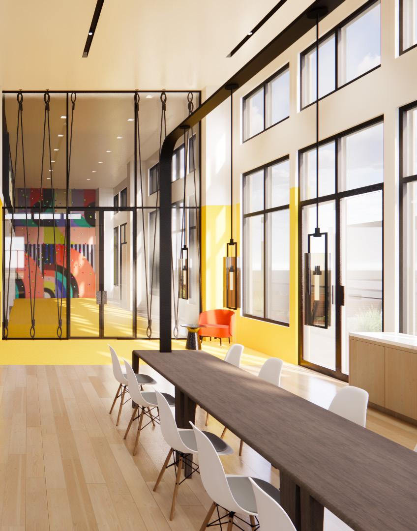 UNCOMMON living amenities include a study courtyard, golf lounge with a golf simulator, yoga and fitness studio, game day lounge, resortinspired swimming pool, and pet park.