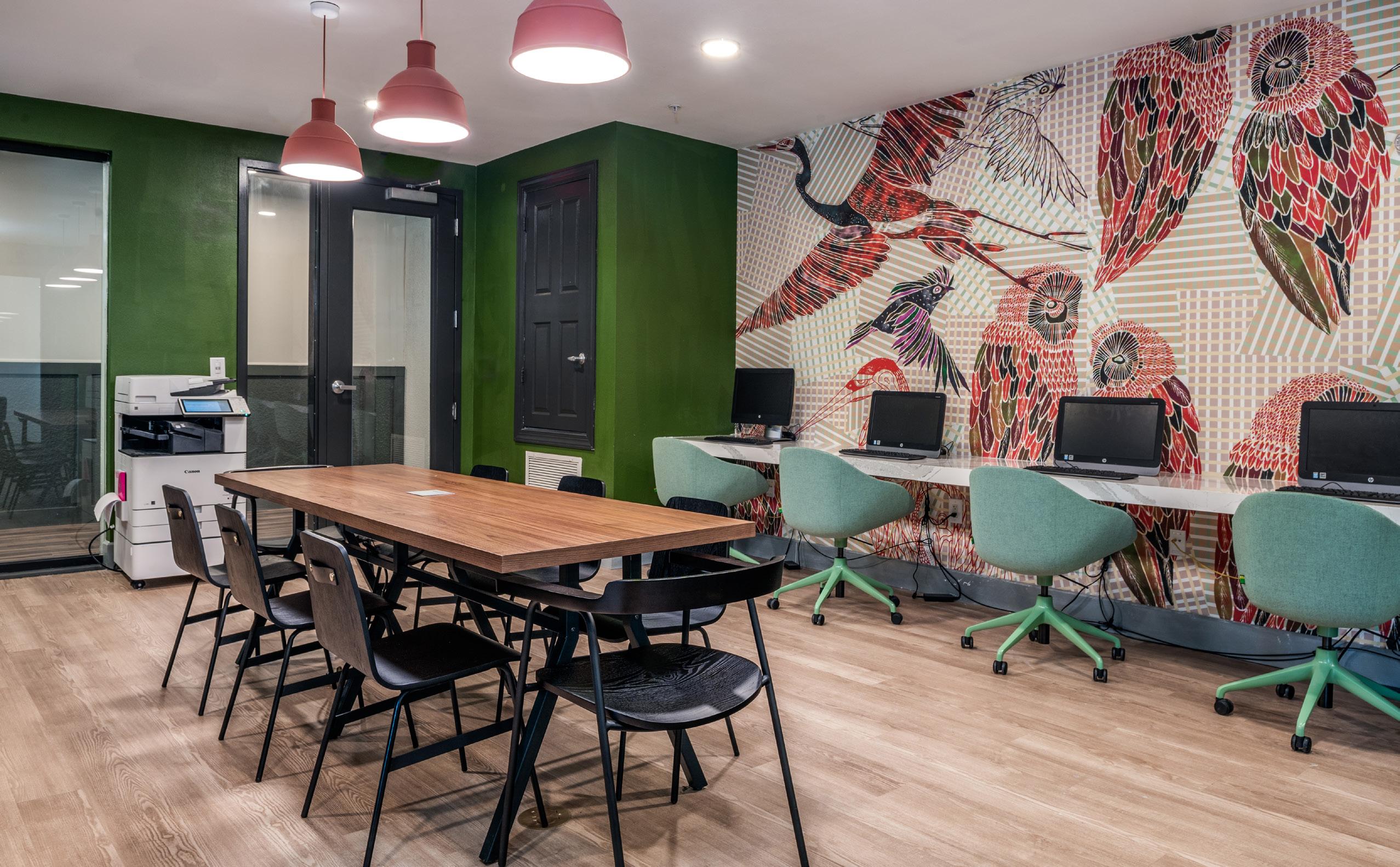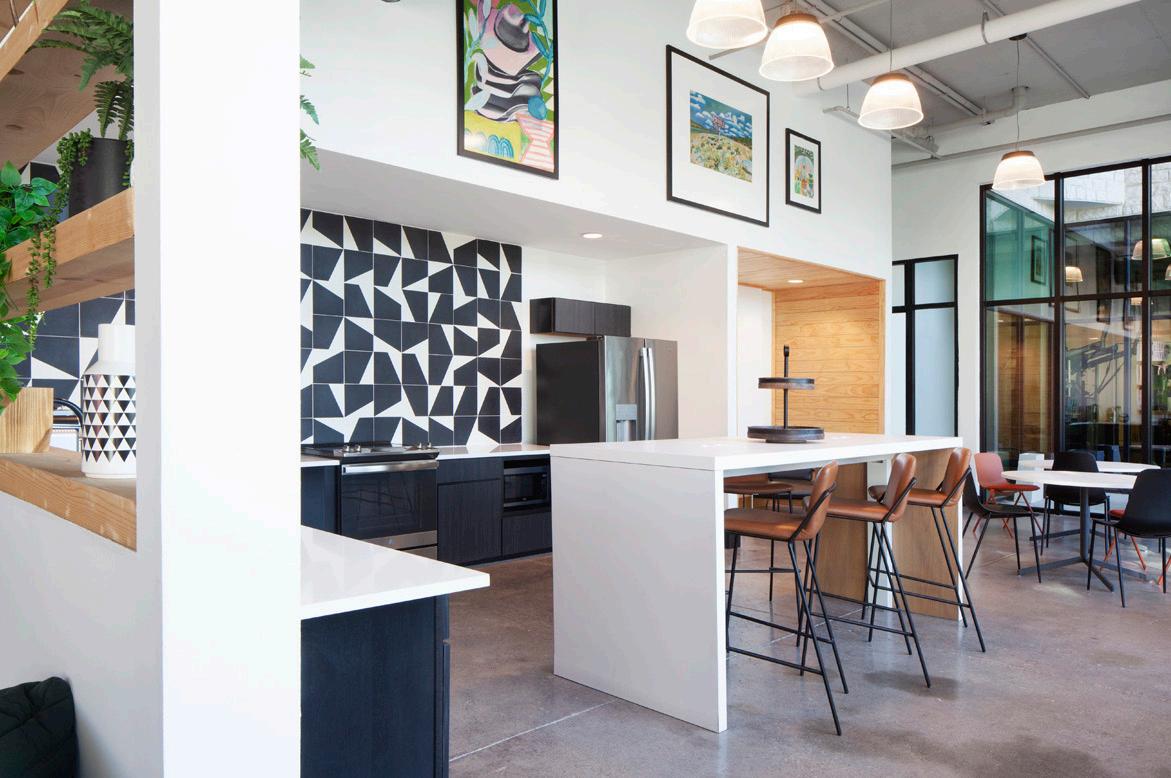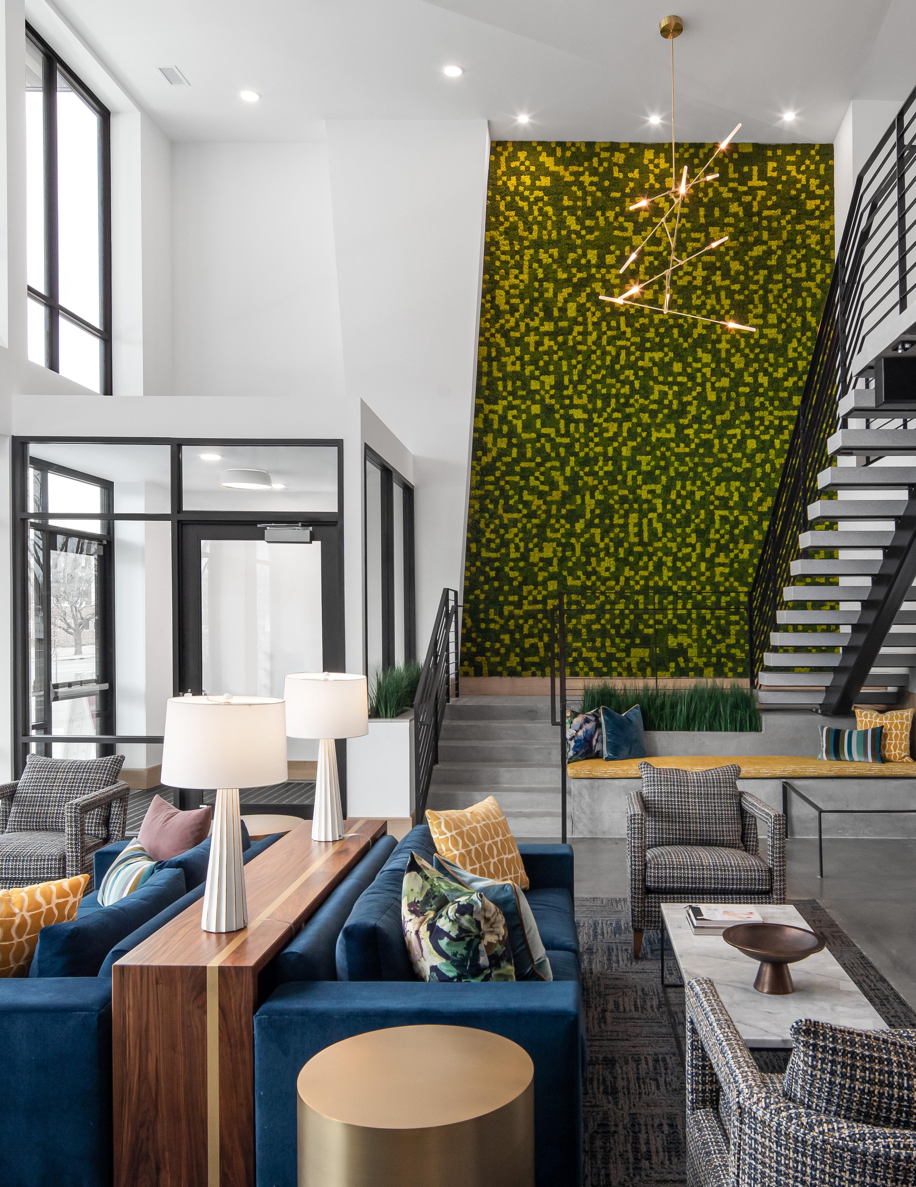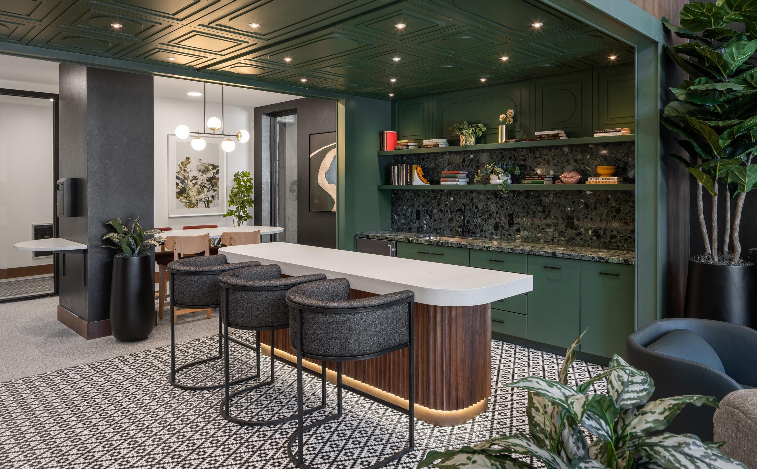 The interior design of Aves showcases a mix of grey washed and natural wood tones balanced with vibrant colors and patterns giving residents the look and feel of resort-style living. Residents have the ability to utilize the clubhouse for social gatherings as well as group study activities all while being steps away from the lush courtyards and the pool deck.