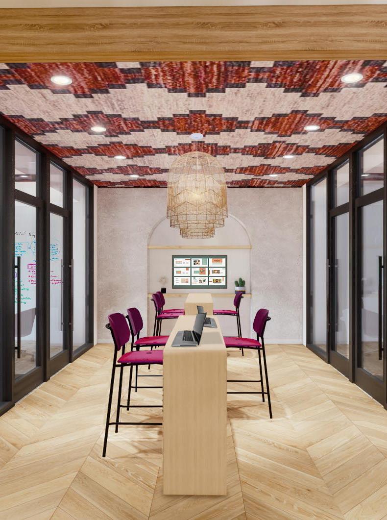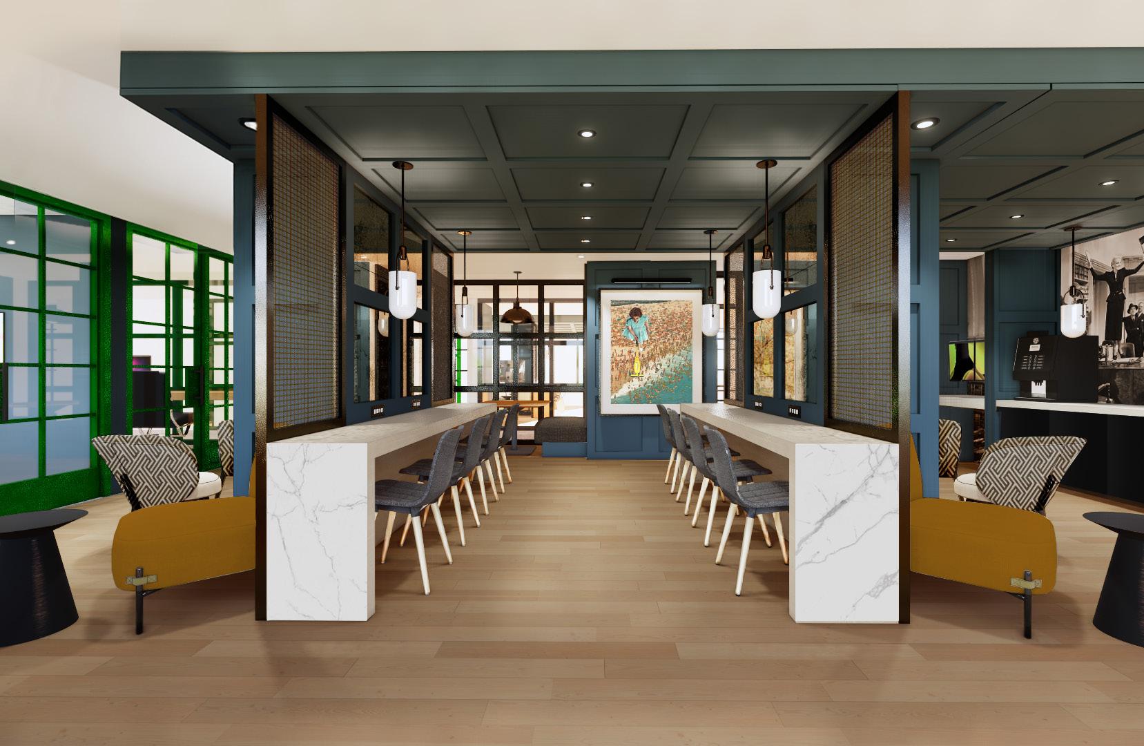 Refinement of the concept and documentation occur during this phase by marrying the space planning with the concept in a 3-dimensional illustration of the design. Visualization presentations may include wireframe and/ or rendered studies, plans, key elevations, initial detail, material and FF&E selections, and virtual reality walk throughs when warranted.