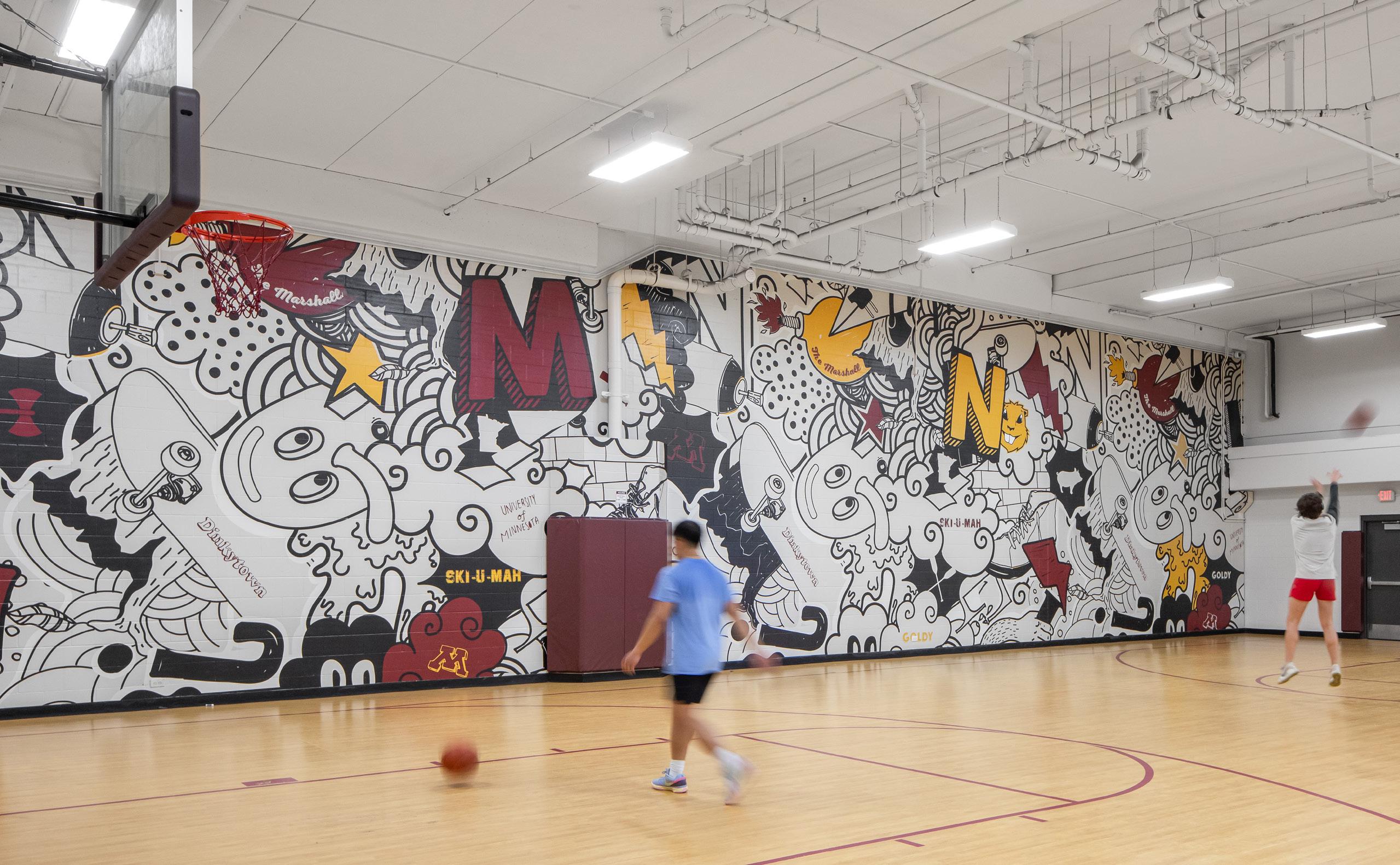 The Marshall is located just north of the University of Minnesota East Bank Campus in the Marcy-Holmes neighborhood of southeast Minneapolis. It includes retail and commercial space on the first floor and a series of walk-up townhome units on the ground floor, that allow residents to have direct access from the adjacent sidewalk.