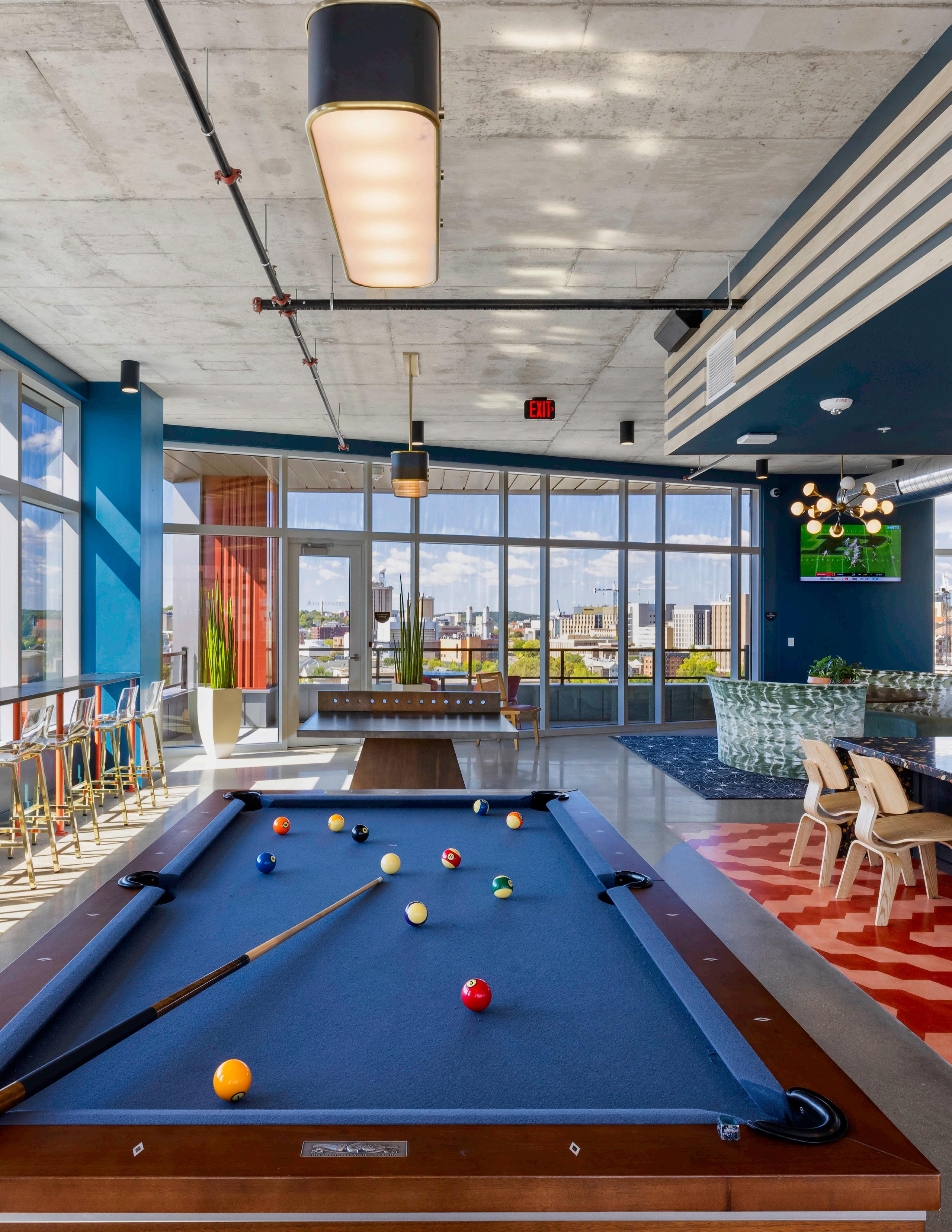 Apex is 305-unit, 938 Bed student housing project adjacent to the RIT campus. The building is situated on 14.1 acres and features one, two, four, and five-bedroom units. The apartments are fully furnished and the building features state of the art amenities. The building is pet friendly and offers an on-site pet spa. Additional amenities include: E-Sports arena, outdoor firepits, virtual reality studio, electric car charging stations, dual hot tubs- open year round, ingenuity labs with Macs and printing station.