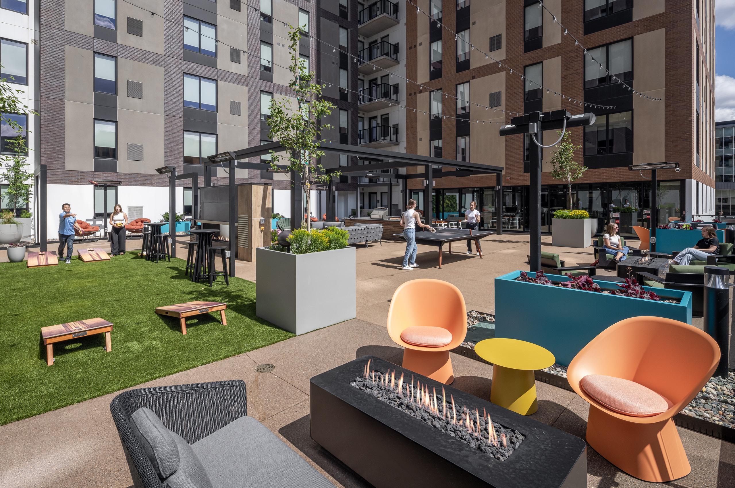 The Standard at Bloomington incorporates 439 units and 1,064 beds within three residential buildings. Amenity spaces will include a lobby, clubroom, fitness, study areas, business center, mail, basketball court, and facility leasing/management space. Outdoor amenities will include a shared outdoor courtyard with amenities such as outdoor patio, pool, firepit, grilling stations, bar, trellis, private walk-out patios and landscaping.