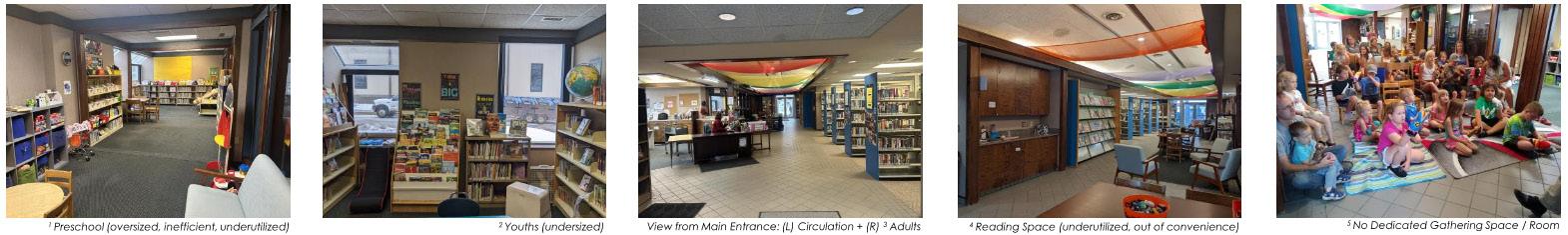 The study included an evaluation of multiple strategies, including existing building renovation and expansion, re-building on the current site, and potential relocation of the library to multiple potential new sites. The scope of work included a space needs assessment study, benchmarking the library with metrics of the regional library system, dialogue with key library and community stakeholders, development of a recommended space program, development of functional adjacency diagrams, and development of total project cost estimates for each scheme reviewed.