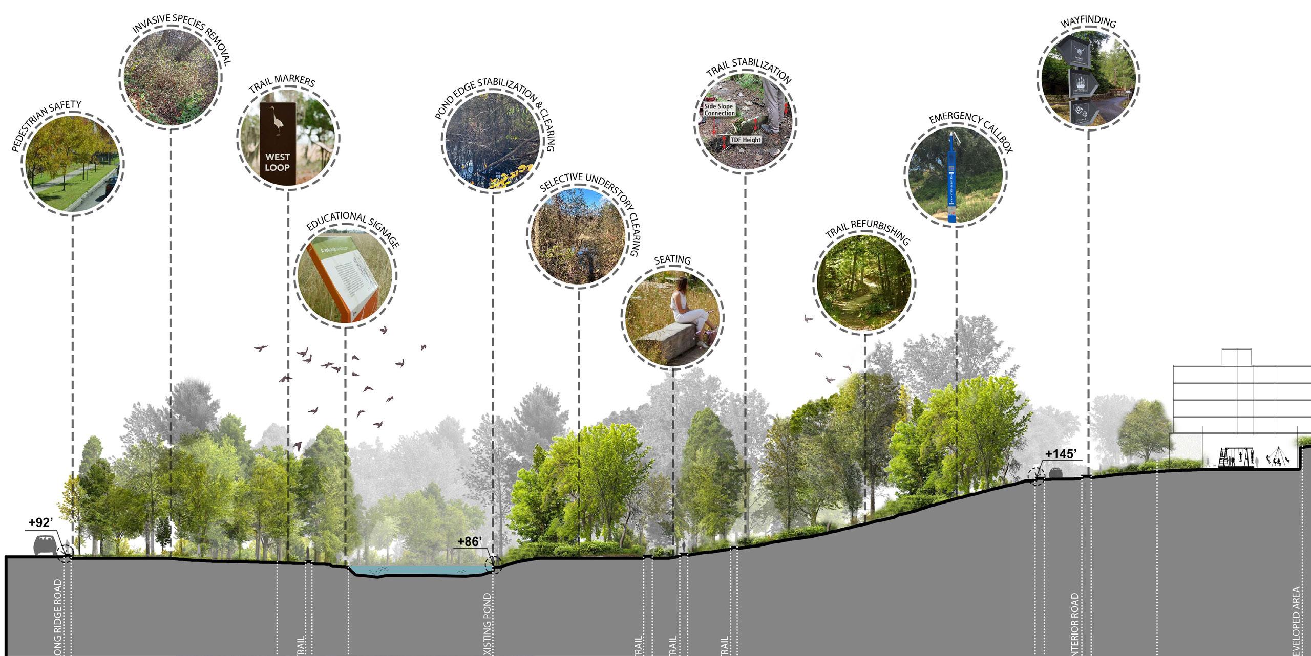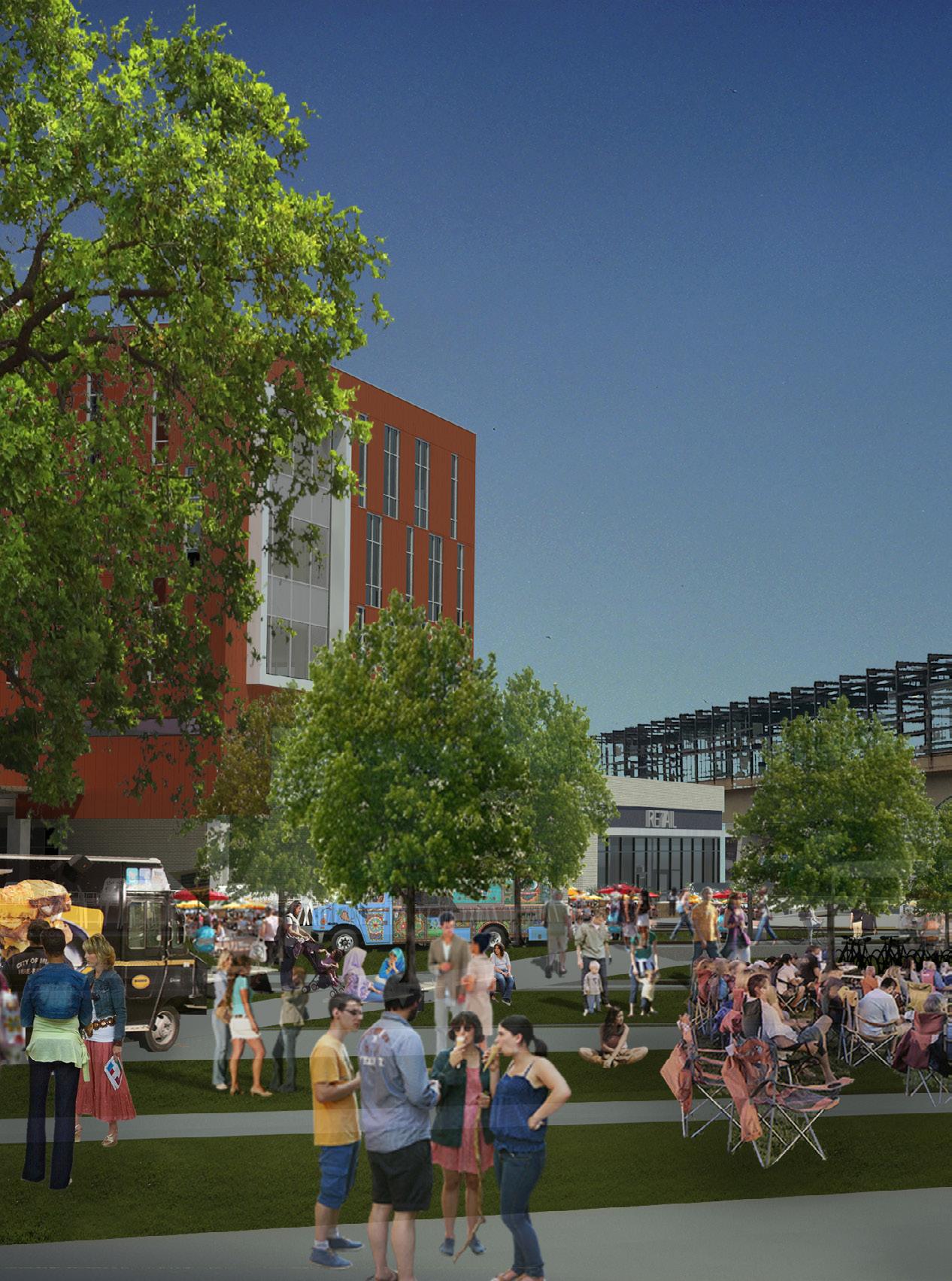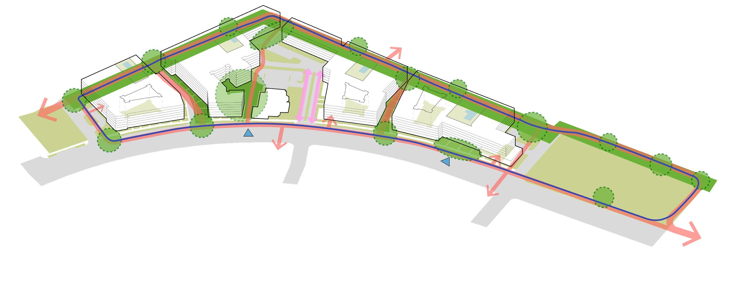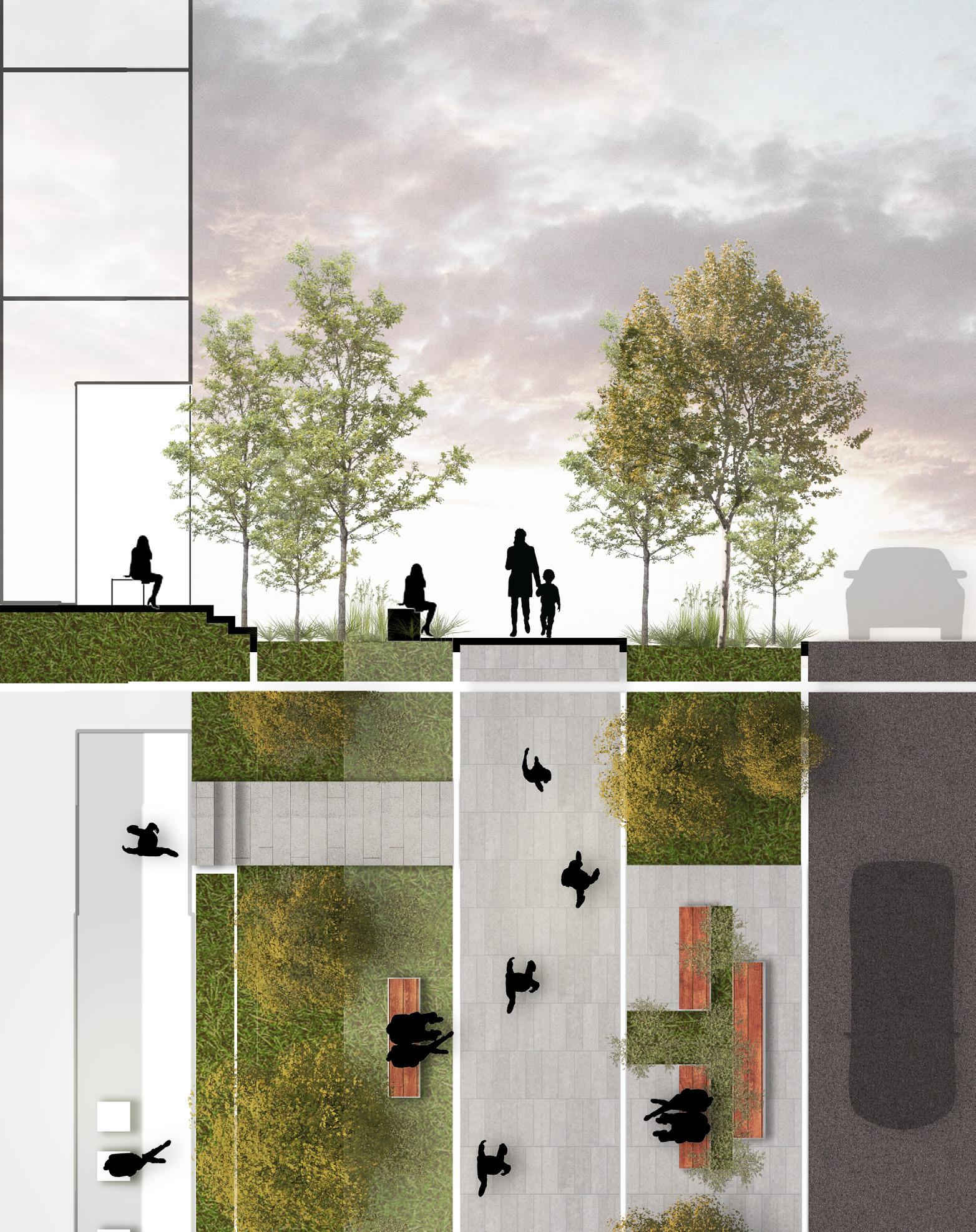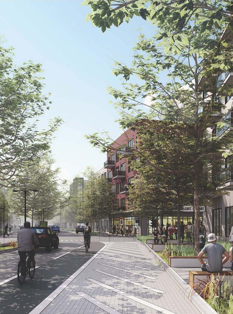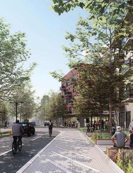 Connective pathways interspersed with pocket parks, fitness stations, and artistic elements link the phases, encouraging outdoor activity and leisure. Environmental sustainability is prioritized through green infrastructure like bioswales and rain gardens, which manage stormwater and contribute to the ecological health of the development.