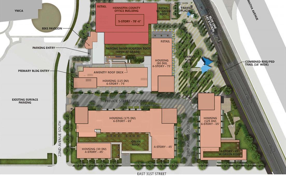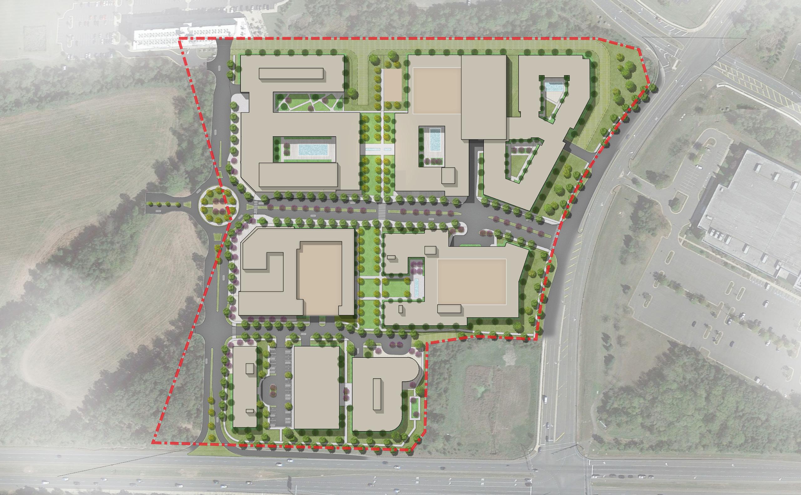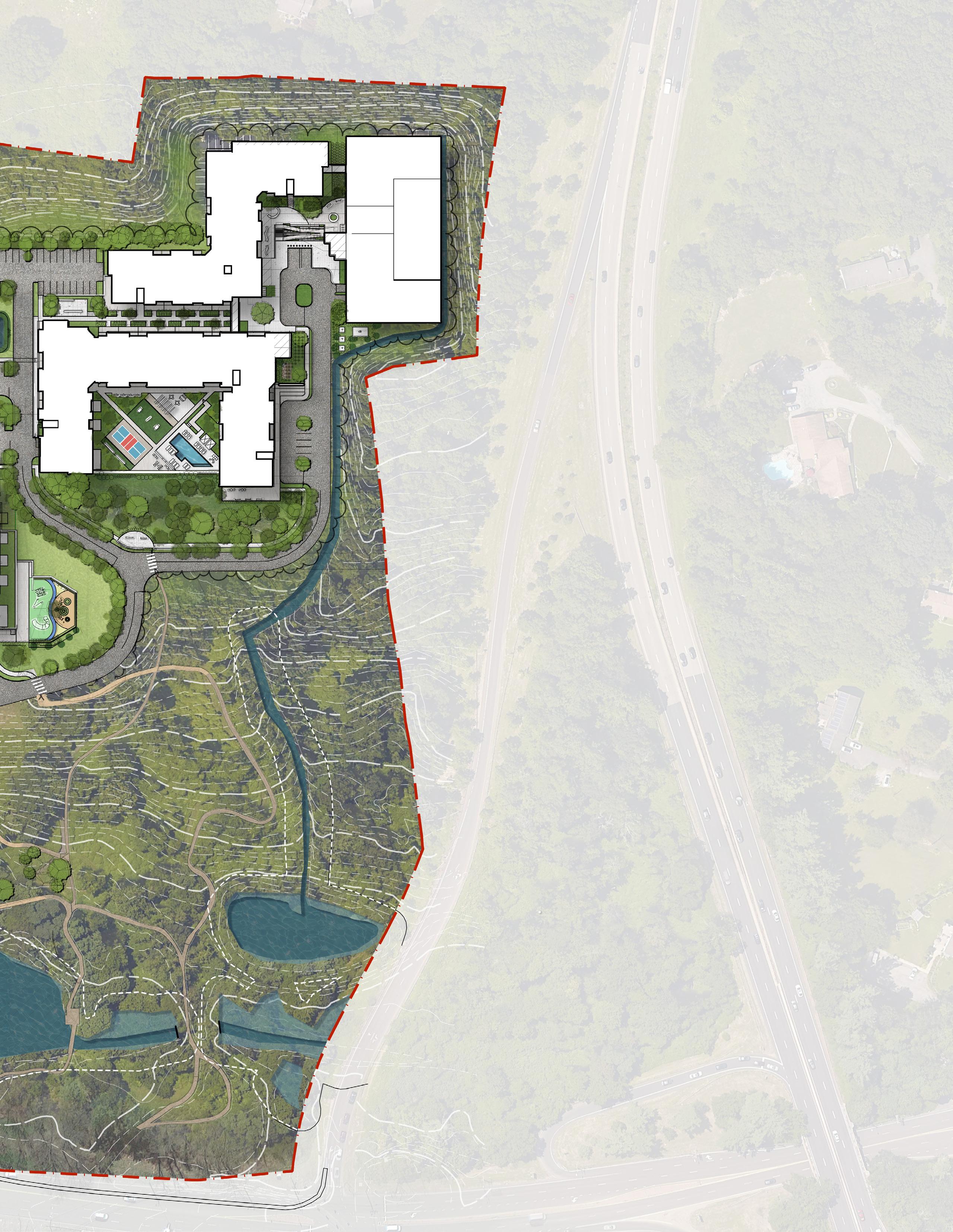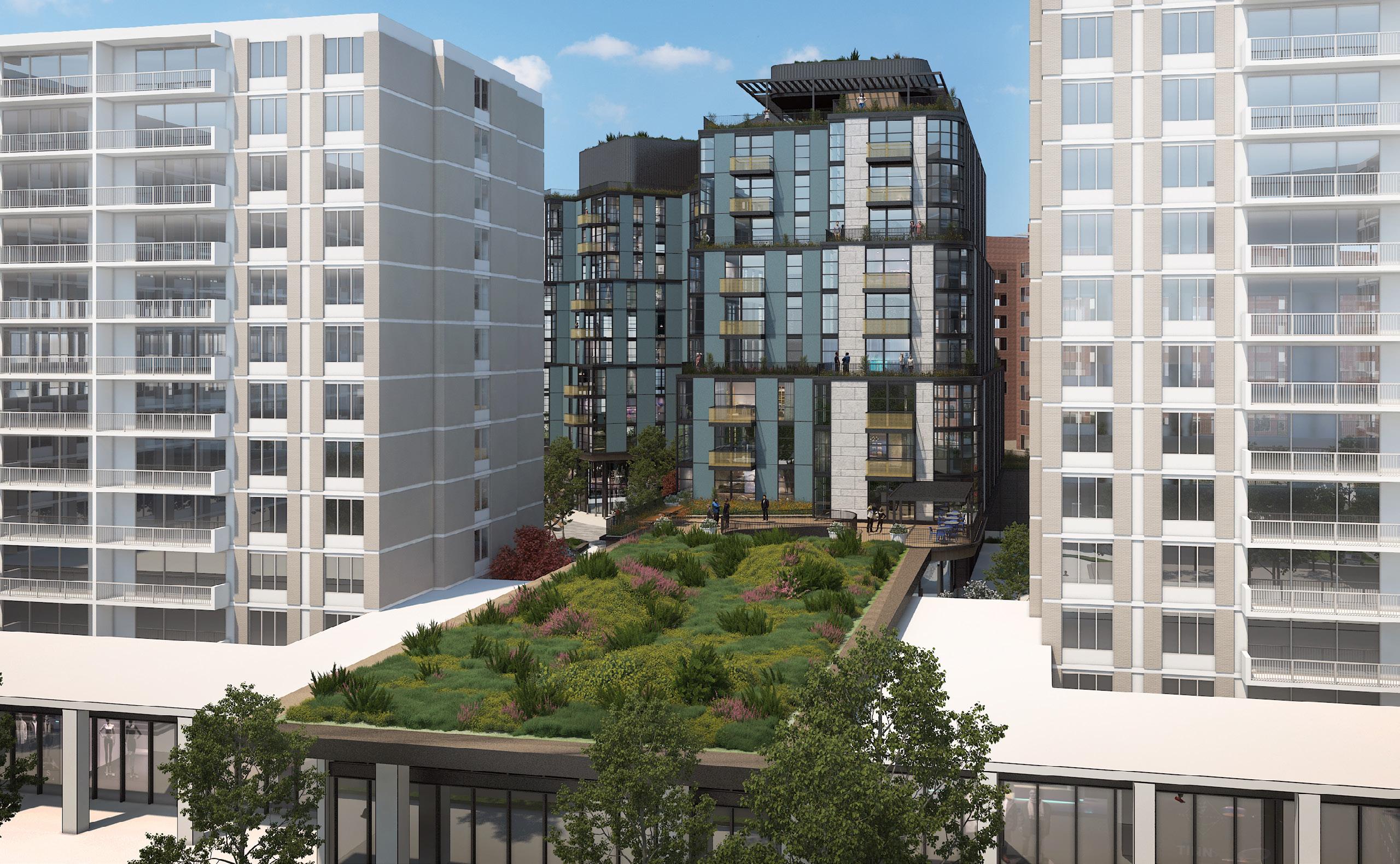 Mixed-Use market rate neighborhood with interconnected linear park system