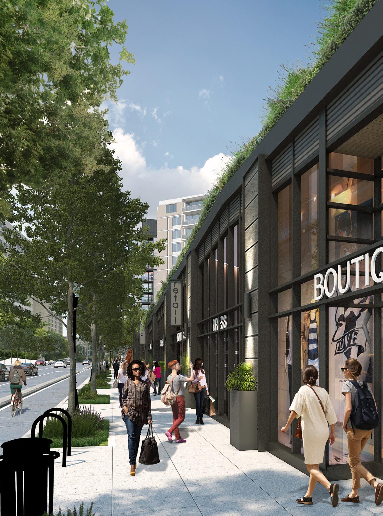 Designed to create an active street and pedestrian experience, Utilizes light-gauge steel construction