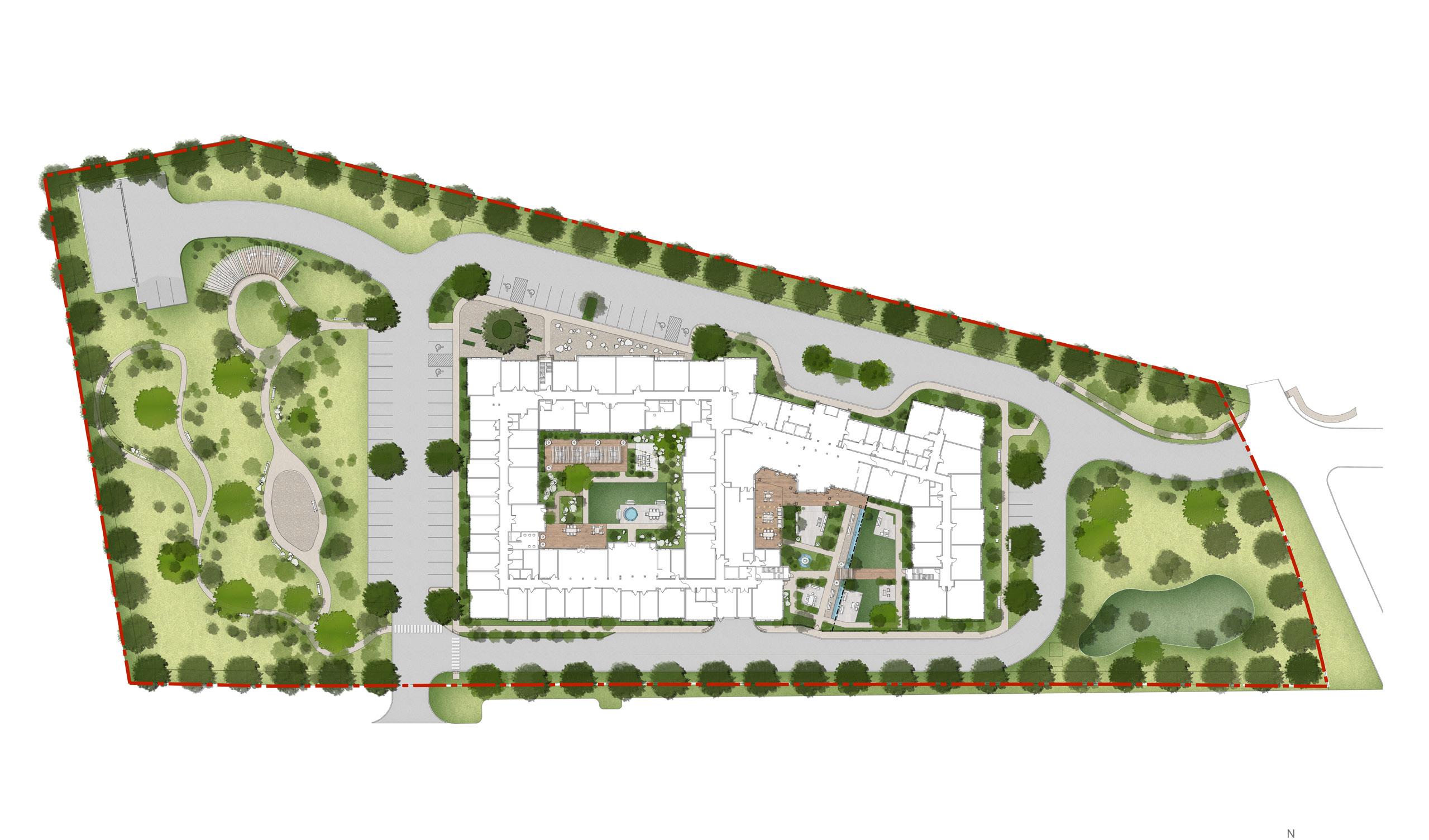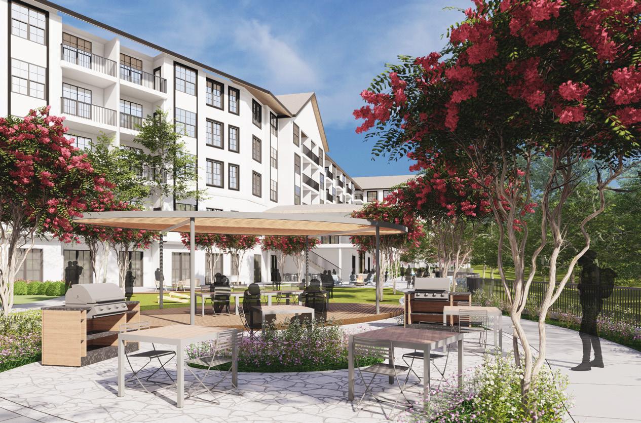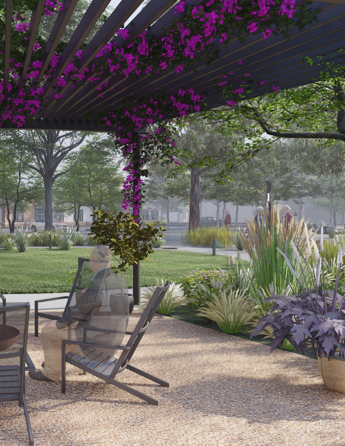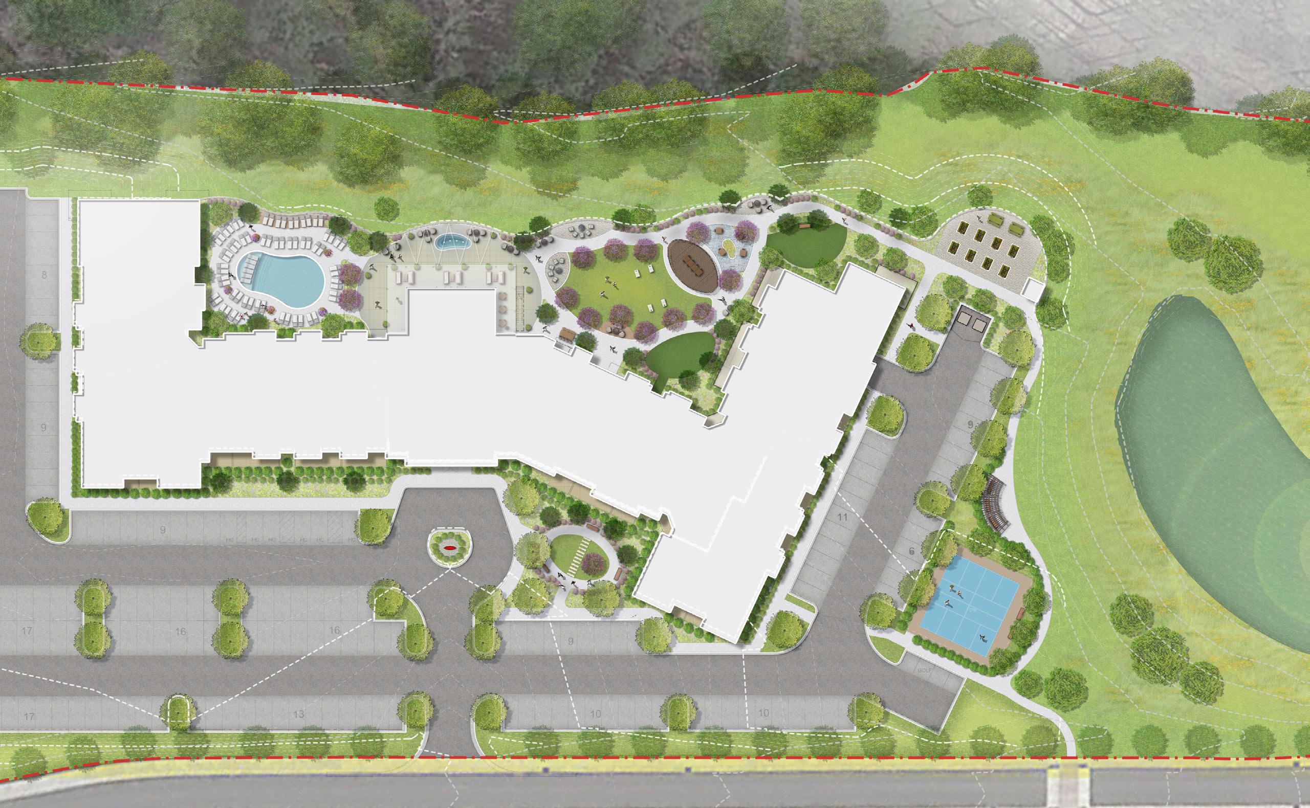 Verdant at Flowers development is an active adult housing development located in Clayton, NC. The design inspirations were to encourage community, create an outdoor room with a view, having moments of interest, and using inviting materials.