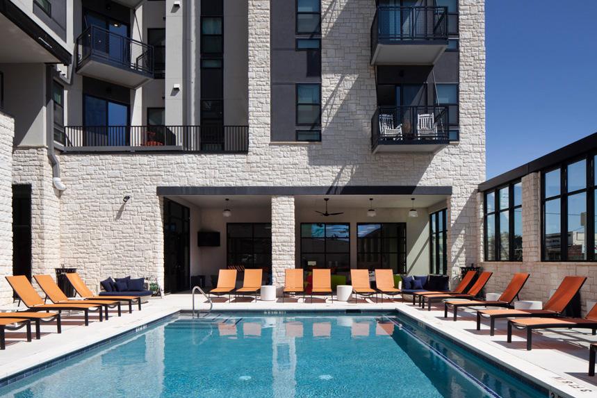 The Parlor is a vibrant Student Living community in the heart of downtown San Marcos, Texas. This luxury student living community offers a variety of fully furnished 1,2, 3 and 4 bedroom unit plans. Residents are drawn to the modern aesthetic of the units featuring a light and bright color palette, quartz counter tops, stainless appliances and stylish furnishings. The common areas are designed for residents to achieve both social and academic success. The clubhouse is connected seamlessly with the outdoor pool deck allowing residents to see and be seen. Flexible common spaces allow for entertaining and socializing as well as provide ample study space. Outdoor fitness and gathering space is emphasized on the property offering a wellness based approach to student living.