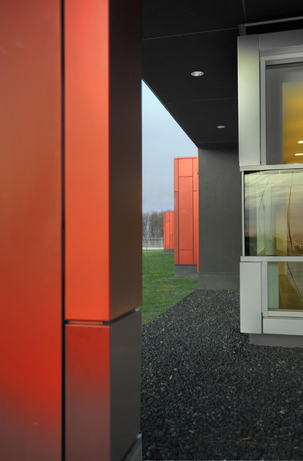 One part office and one part regional service hub within a building featuring a striking exterior and landscape design, establishing a beacon in a diverse neighborhood.