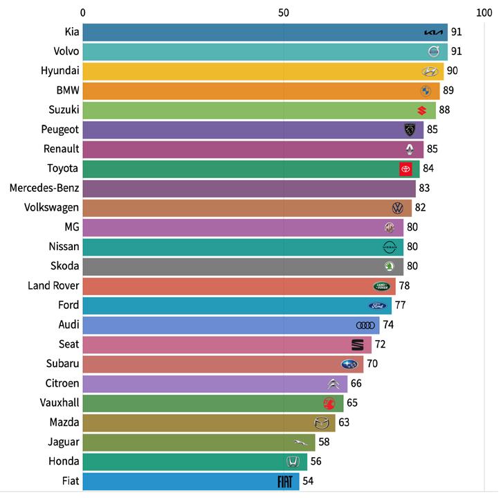 The top three car manufacturers were separated by fewer than three percentage points – it’s probably the tightest finish in the history of running these awards, and shows exactly which carmakers are getting it right for their dealers. Moreover, it’s fair to say that those relationships between the brands and their retailers have never been so important if the past two years of Covid shutdowns, strained new car supply and frenzied used car sales are anything to go by.