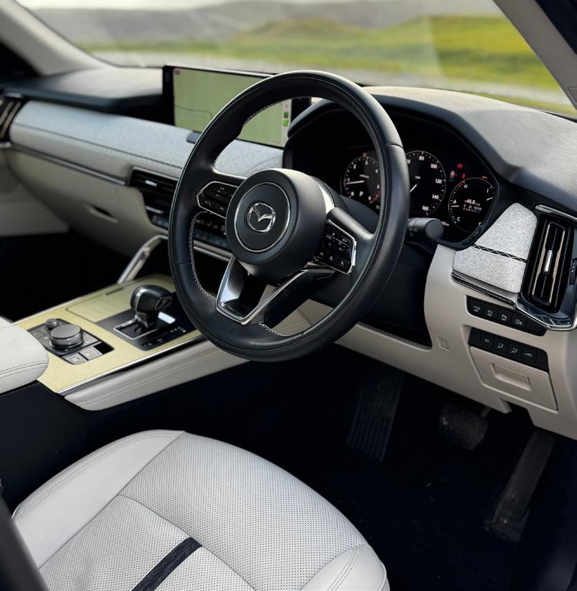 Enjoying the Mazda’s highend feel of Nappa leather, maple wood and fancy ‘hanging’ stitching.