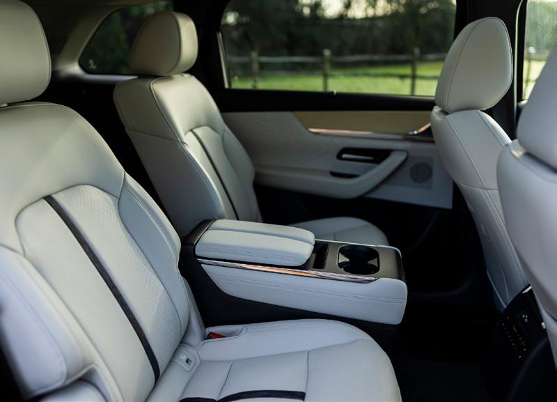 BW74 FOV is the ultimate expression of Mazda’s dream of being considered a premium carmaker. It’s the range-topping Takumi Plus version, complete with leather and wood, but also comes in a very American seating configuration. As standard, the CX-80 is a seven-seat SUV, with a three-person bench that slides and reclines, and a pair of seats in the boot.