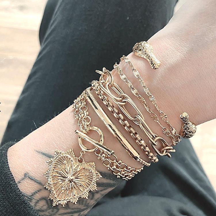 Since80sinfluenceiskeyforthistrend,itisimportanttofocusonoversizedchunkymetalsforthisjewelry concept.Boldgoldandshoulderpadsareback!Metalshouldhavevintageinspiredtexturesandchains shouldfeelinterestingwhilebeingchunkierinscale.