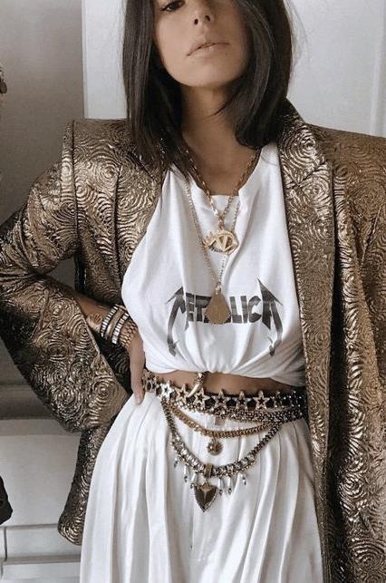 Fromrunwaystostreetstyle,thisyearisseeingabold resurgenceofedgyRock&Rollinfluences.Thinkblackleather, lace,andatouchofdarkromanticism.Rock&Rollfashionhas alwaysbeenaboutmorethanjustdarkcolorsandedgydetails; it'sastatement,ablendofrebellionandartistry.In2024,this trendhasevolvedtoincorporateamoderntwist,withelevated silhouettes,boldaccessories,andatouchofgrunge.
