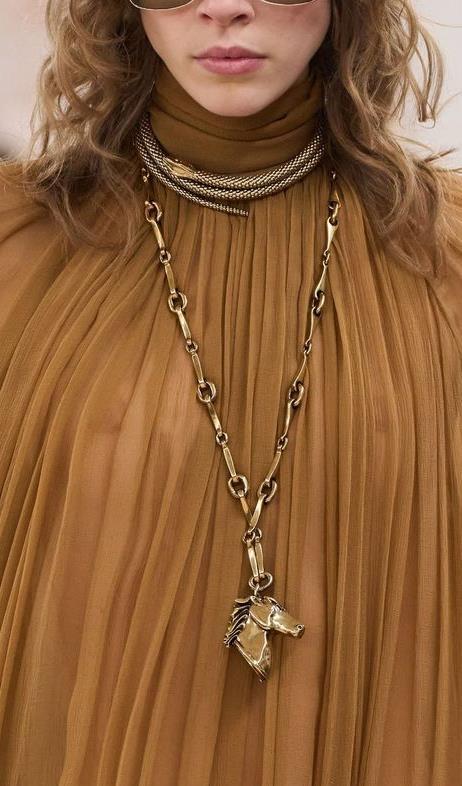 Forthisgroup,thinkaboutwaystoupdatethenostalgicbohemianvibe.Focusoneclecticcharmswith textureandantiquedplating,whileincorporatinglayerablepieces.Oversizedpendantswillbeanimportant silhouetteforthisconcept,aswellastheincorporationofcelestialinfluences.