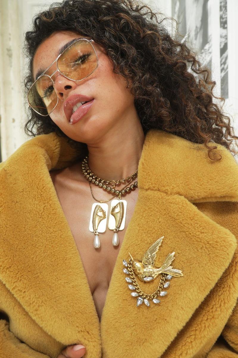 Asleopardcontinuestobecomeincreasinglypopular,weare seeingotherelementsofthewildtrendingalongwiththis timelessprint.So,expecttoseeatonoffauxfurs,insects& jungleanimalicons,andcroc/snakeskinmaterials.Basically, anythinginfluencedbyanimalsinnatureandeventhe animalitself,willbetrendingcomenextFall.