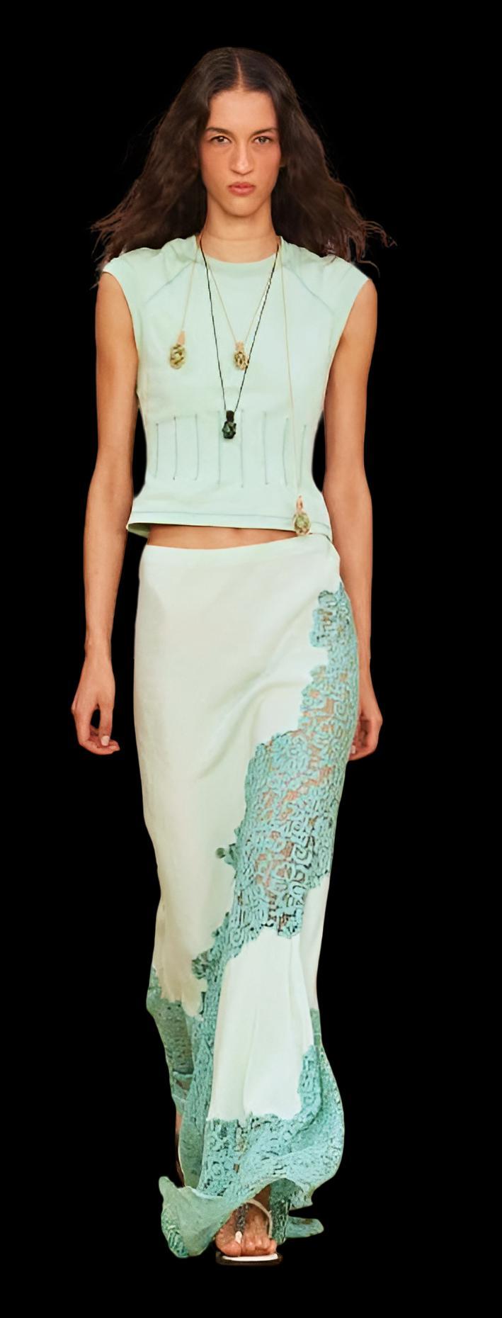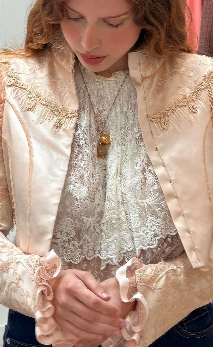 PoeticLoveStoryreflectstheriseofpoetcore,gaining momentumwithGenZonTikTokasaresponsetodigital overloadandagrowingdesireforslower,moreintrospective living.Rootedinliterarynostalgia,thetrendblendsvintage tailoring,delicatelace,handwrittenmotifs,andheirloominspireddetailsintoarefined,emotionallydrivenaesthetic. Forspring,thisdirectionresonatesthroughlighterlayering, romanticblouses,softsuiting,andmeaningfulaccessoriesthat feelpersonalandcollectedratherthantrend-led.Theappeal liesinitsabilitytomergestorytellingwithstyle,offeringa thoughtful,expressivewardrobethatalignswithabroader shifttowardintentional,experience-drivenlifestyles.