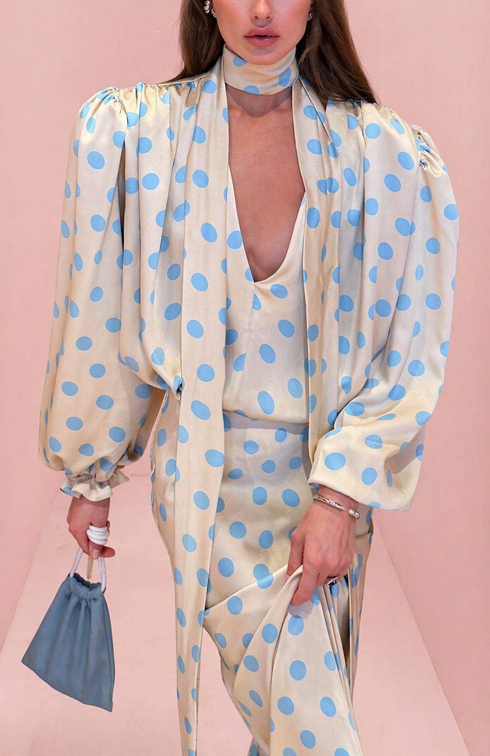 RetroRomancereintroduces80s-inspiredsilhouettes throughamodern,femininelens,wheresculptedshapes, fittedwaists,andstatementproportionsfeelplayfulyet elevated.Saturatedpastels powderblue,butteryellow, softlilac,andblush bringafresh,high-impactcolor storythatbalancessweetnesswithboldness.Keypatterns likepolkadotsandabstractfloralsarereworkedwith graphicclarity,addingasenseofnostalgiawithout feelingcostume.Boldresinelementscompletethelook, addingaglossy,statementfinish.
