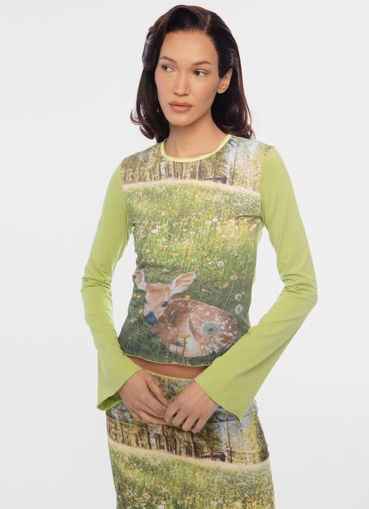 EnchantedFolklorecapturesamystical,dreamlikeescape wherenature,nostalgia,andstorytellingintertwinethrough anelevated,fashion-forwardlens.Softlylayeredsheers, antique-inspireddetails,andorganictexturescreatea whimsicalbalancebetweenetherealfemininityandgrounded, everydayease.Motifsofbutterflies,botanicals,celestial elements,woodlandcreatures,andfairiesarereimaginedwith arefined,almostmagicalsensibilitythatfeelsbothdelicate anddirectional.Thistrendinvitesaromanticyetmodern interpretationoffantasydressing,wherethemysticalbecomes effortlesslyattainableandquietlyenchanting.
