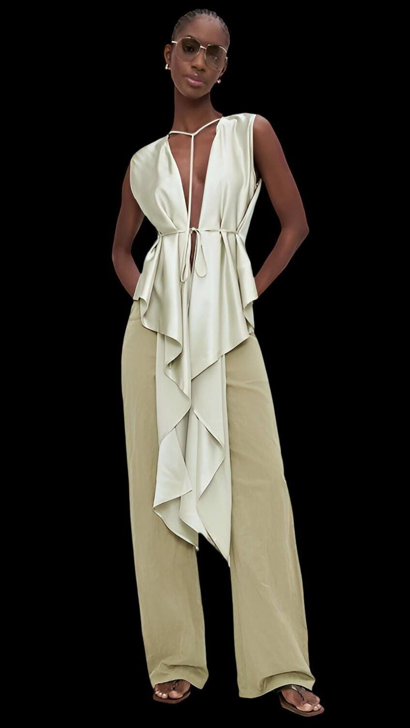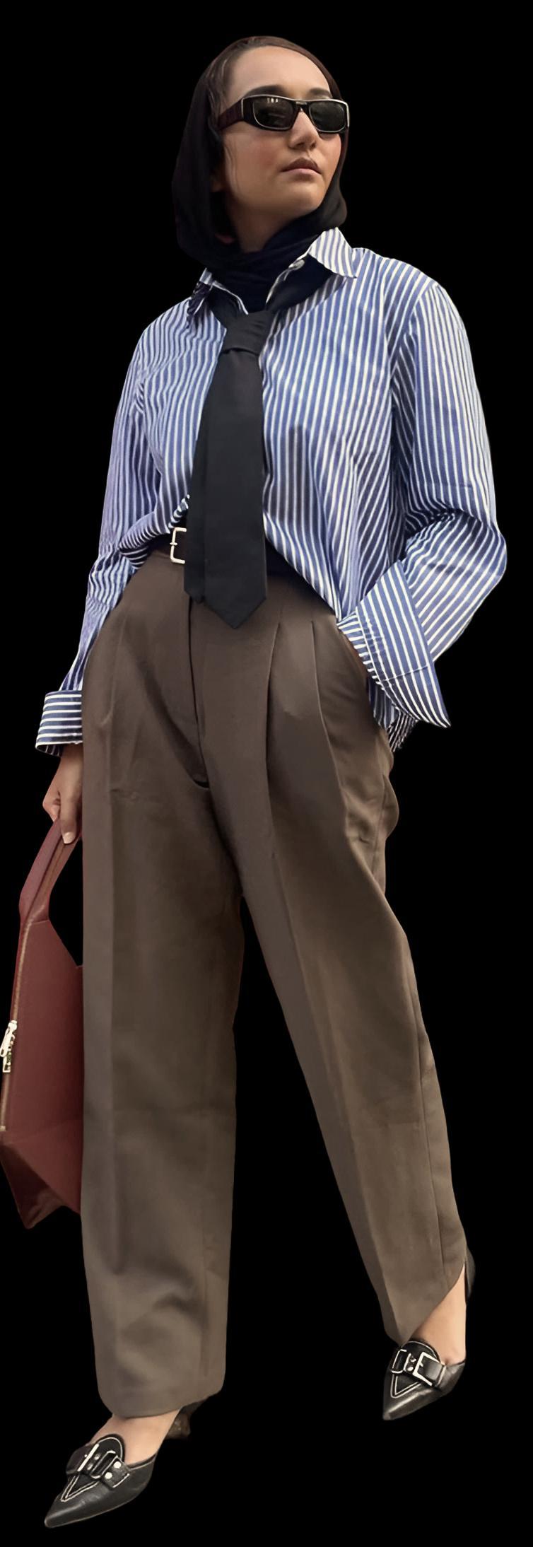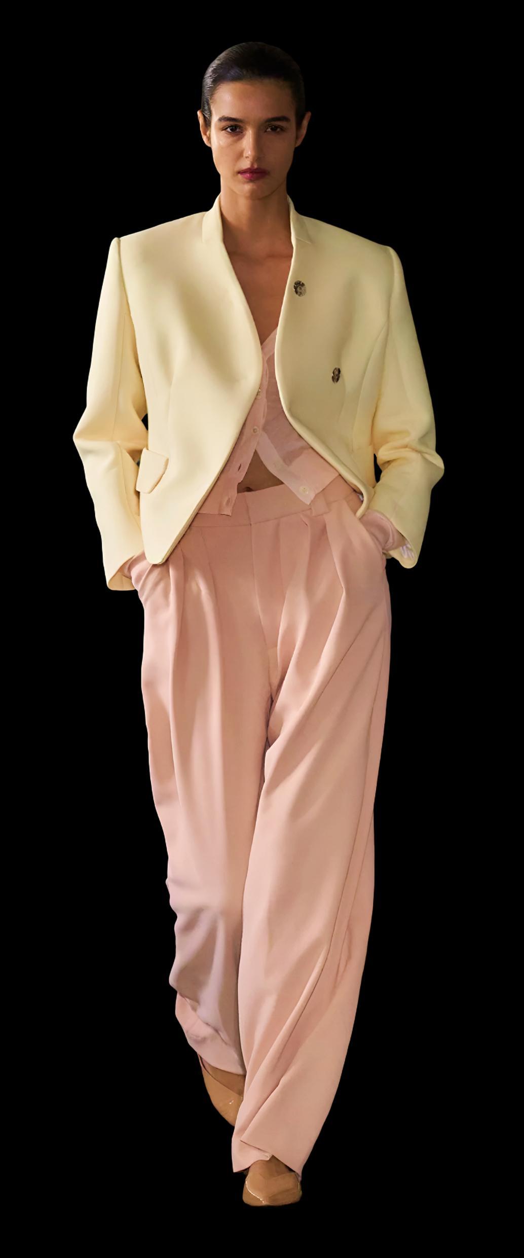 BorrowedFromTheBoysexpandsbeyondsuitingintoafull wardrobelanguage,whereelementslikeshirting,ties, springtimeouterwear,andtailoredseparatesarestyledwitha senseofease.Womenareadoptingclassicmenswearpieces andreworkingthemthroughproportion,styling,andlayering tofeelcool,directional,andsubtlyfeminine.CrispOxford stripes,relaxedtrousers,andlightweightlayerssoften traditionalmasculinecodes,whileundonedetailsandoff-duty pairingsaddanonchalantedge.Thisevolutionreflectsa continuedshifttowardgenderlessdressing,wherestructure meetssoftnessinawaythatfeelsmodern,effortless,and commerciallyrelevant.