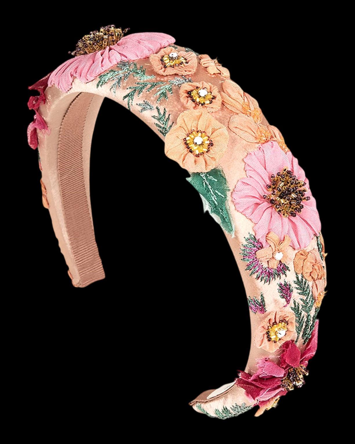 Forsummer,floralsremainimportant.Thisconceptshouldbebold,over-the-top,andcolorful.Besureto focusonembellishmentandmixedmaterialitems.Includealltypesofflowers,whetheritsfabric,seedbead, printedacetate,orevenpressedflorals.