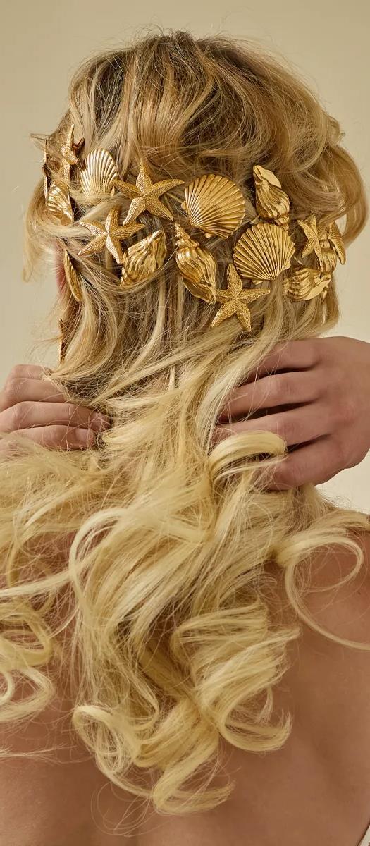 ThishairconceptisamoretraditionaltakeonthetrendbutinacleanandelevatedwayThisisavignettethat consumersshouldbeabletoshopiftheyaregoingonvacation,asunsetyachtsail,aspecialsummertimedinner,ora wedding!Takesummerbeachyiconsandupdatewithglasstonesandpearldetails