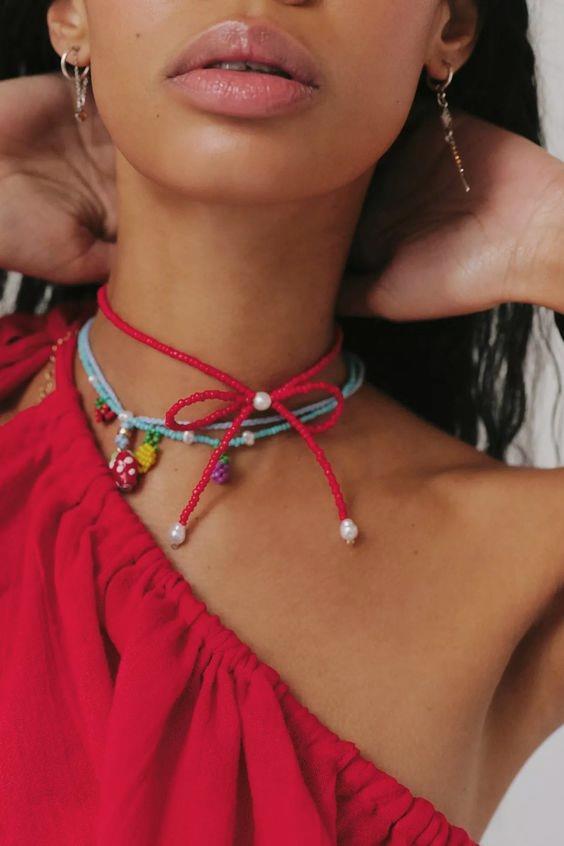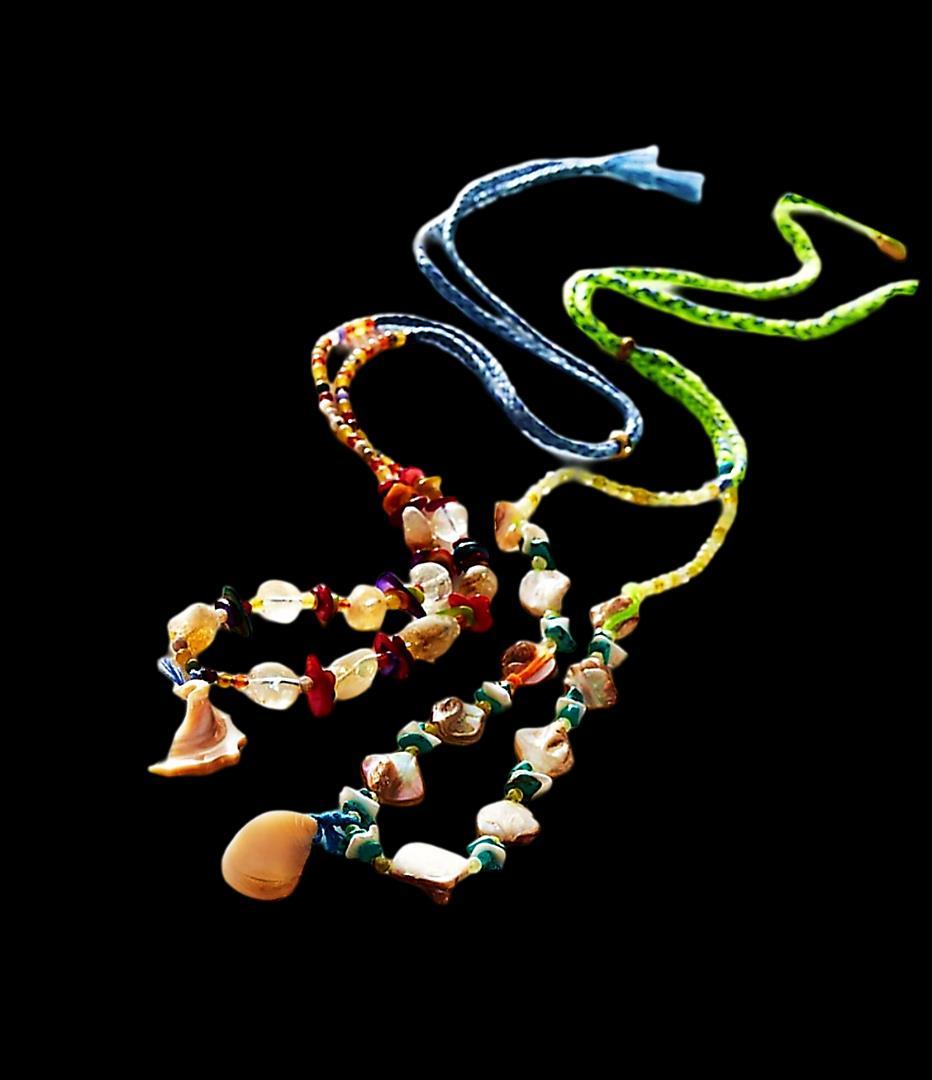 Brightcolor,seedbeads,shells,stone,cording,semi-precious,charms…wewanttoseeitall!Forthis concept,themorecolorandcomponentrythebetter.Thisshouldfeelveryoverthetopandlayerable.
