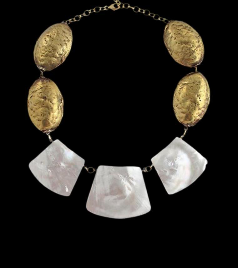 Thisconceptismoreclassicandfocusesjustontheshellmaterial,Itshouldfeelcleanandcontemporary,not playful.Focusonkeyitemssuchaspendantsandstatementearringsthatwilltakeonthisstatementmaterial nicely.Sinceshellislightweight,mixwithmetaltooffermorevalueinweightandincludeinterestingchainwith touchesofeclecticmaterialslikerope.
