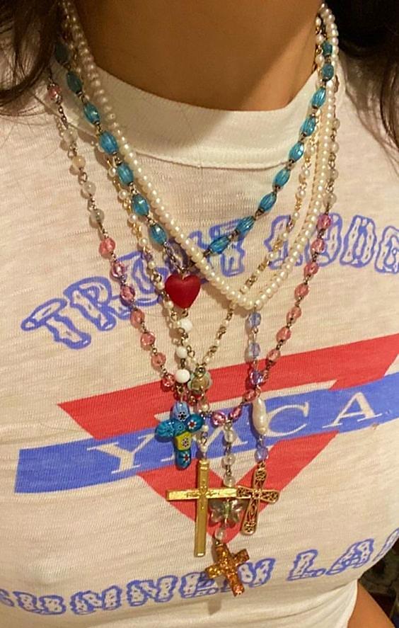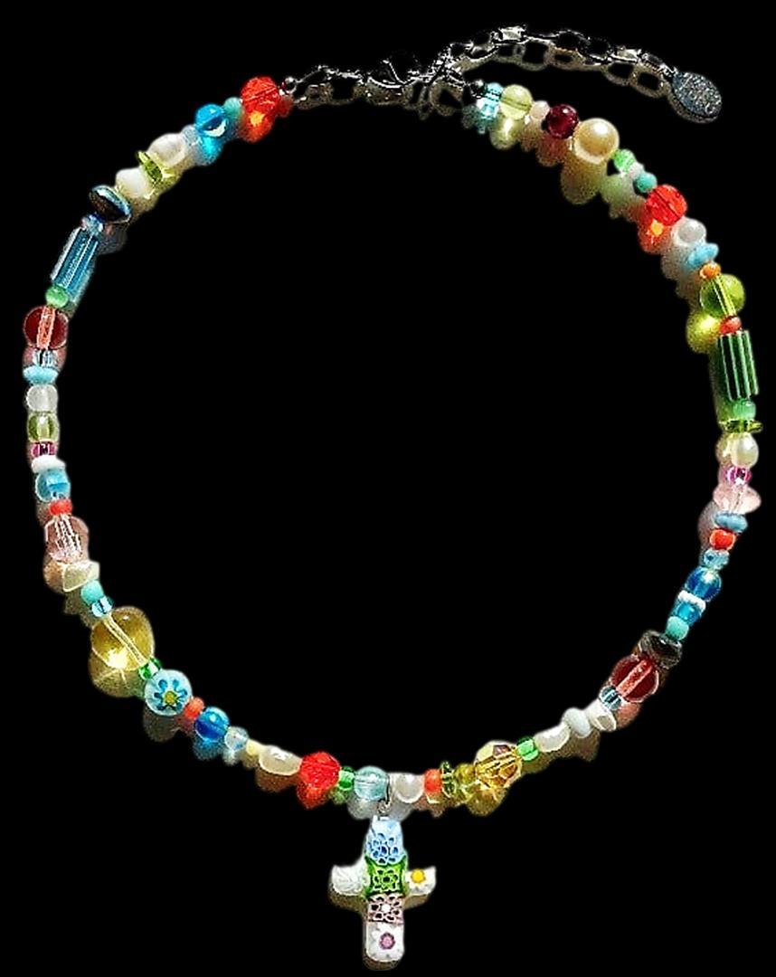 ThisisthevacationjewelryconceptforGenZ!Thisvignetteshouldstillfeelveryfunandeclecticbut lendsitselftoayoungerdemographicbyinfusingyoungericonslikebows,hearts,andcrosses,and nostalgiccomponentrylikeMuranoglass,friendshipbracelets,andspecialresinbeading.