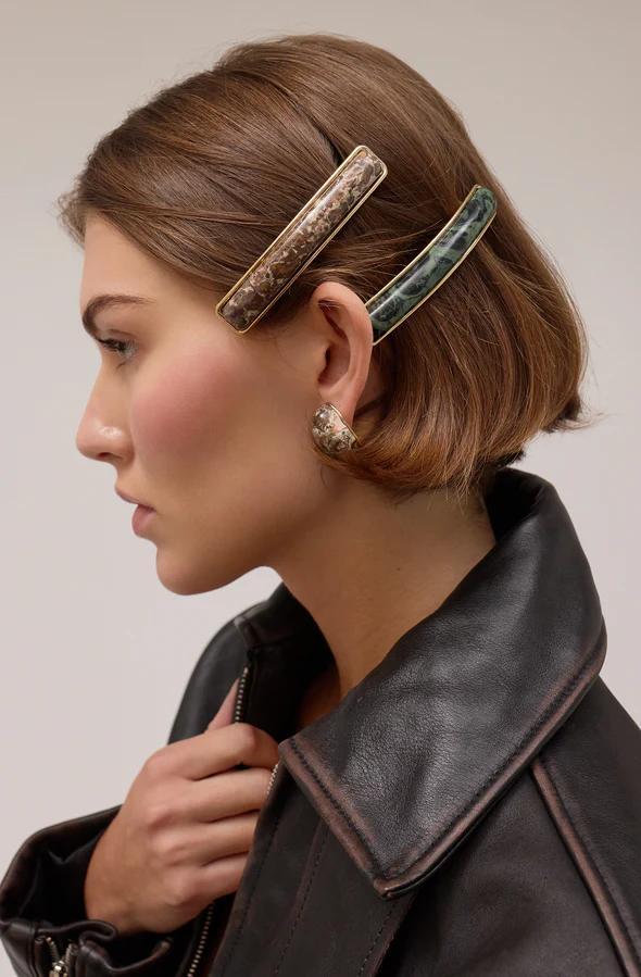 Hairaccessoriesforthistrendshouldfeelverycasualandgroundedinearthtones.Textures andmaterialsshouldhavearuralfarmlandaestheticandslightlywesterninspired.