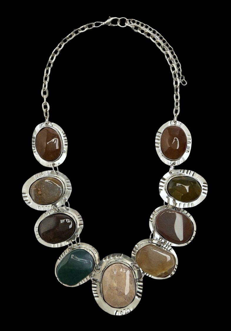 Thisconcepthighlightsbold,artisanaldesignswithantiquedmetals,earthytones,andoversized pendants.Thelookblendsahandcraftedandcasualfeelwithmodernizediconsandscaleforamore statement-makingeffect.Incorporatedifferentresineffectslikemilky,marbleized,andtranslucent.