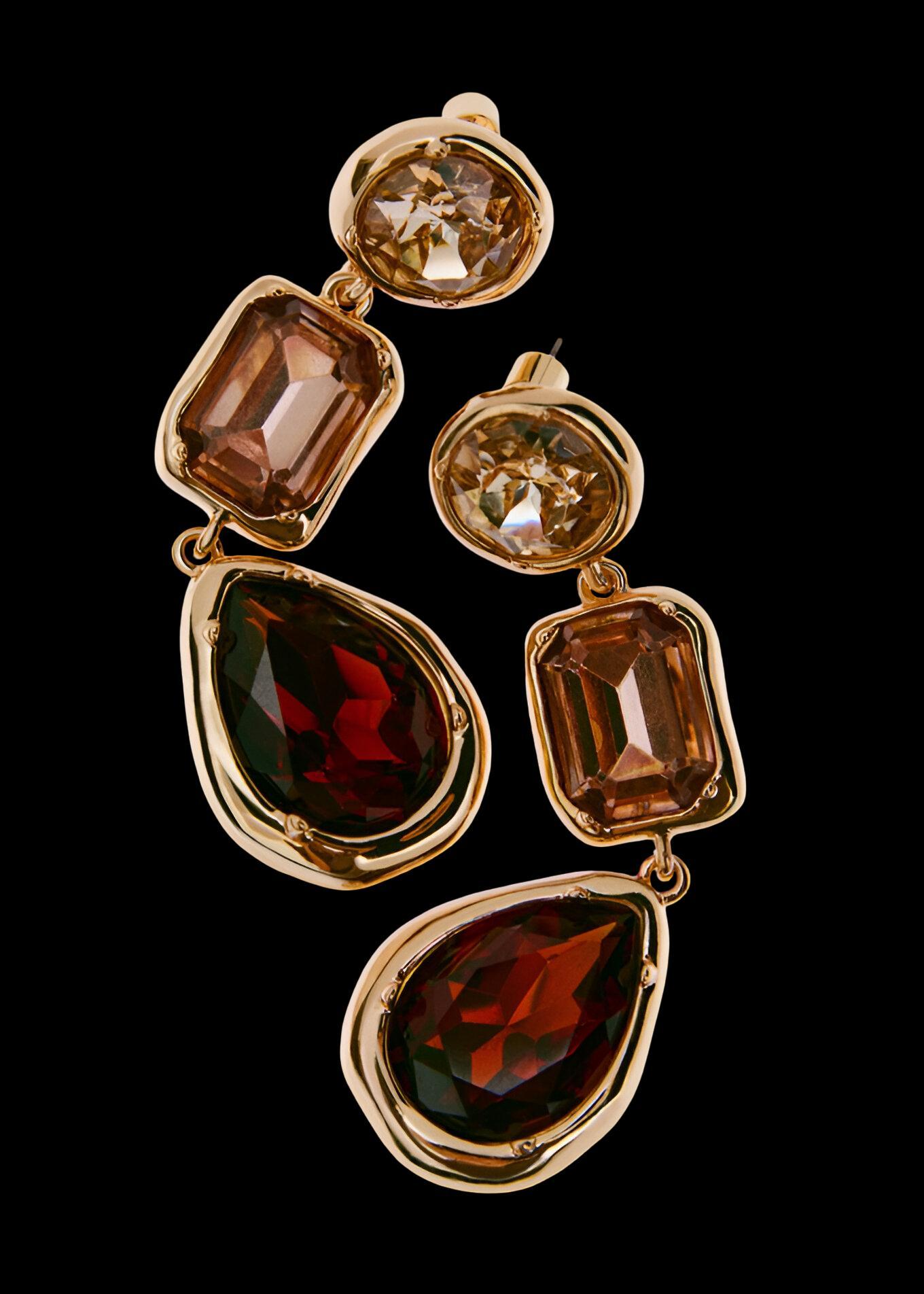 Thisjewelrygroupexploresashadowy,evocativeaestheticthroughfacetedglassstonesandanunexpected mixofsmokyneutralsandcoolertonalhues.Layeredsilhouettesandrichsurfacesparklecreateadramatic yetrefinedpresence,balancingallurewithadistinctlyfashion-forwardedge.