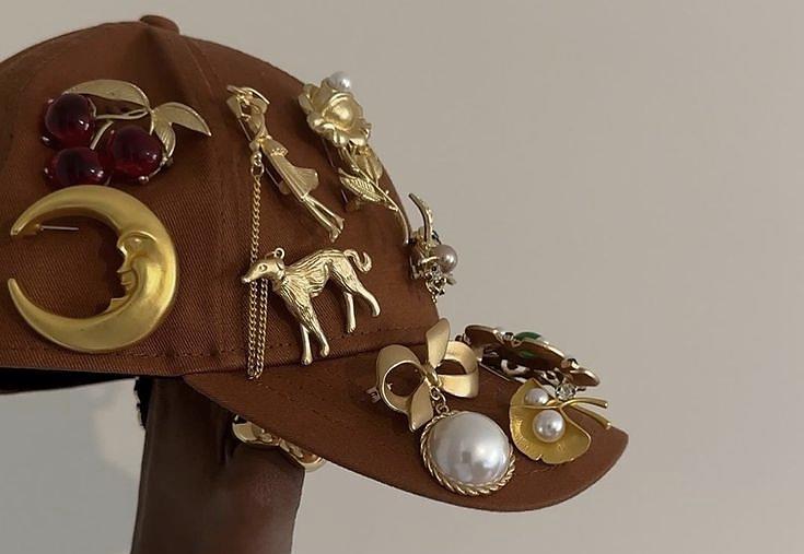Justlikethecharmcraze,weareseeing broochesnotonlyonjacketsandshirts,but alsopants,shoes,bags-younameit,there's abroochonit!