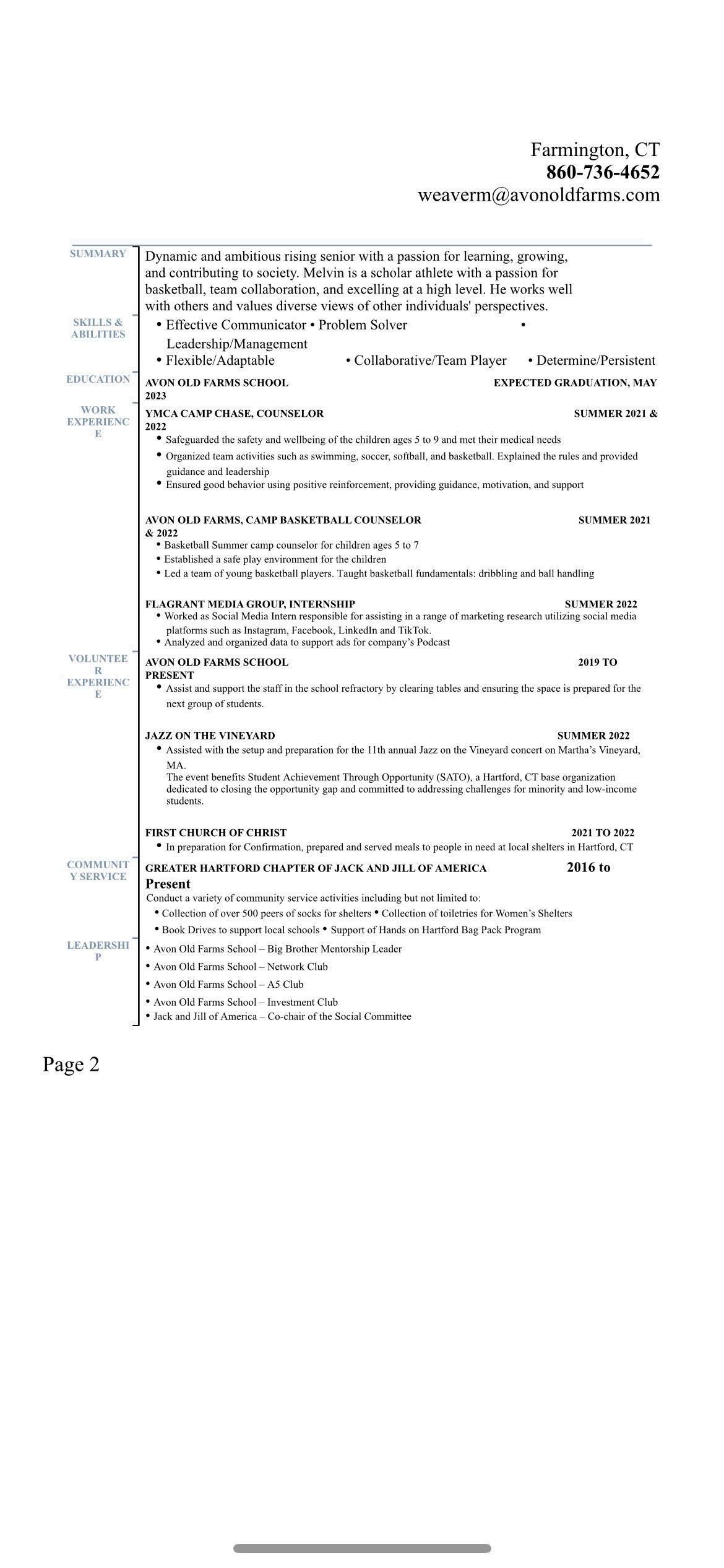 • Participated in school events and helped with fundraising. Volunteer, Landscaping (October 2020-2022)