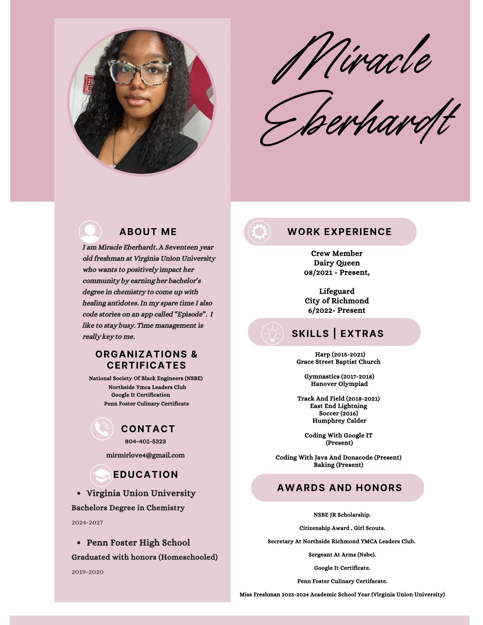 • Delaware State University, National Society of Leadership and Success nominee February 2023.