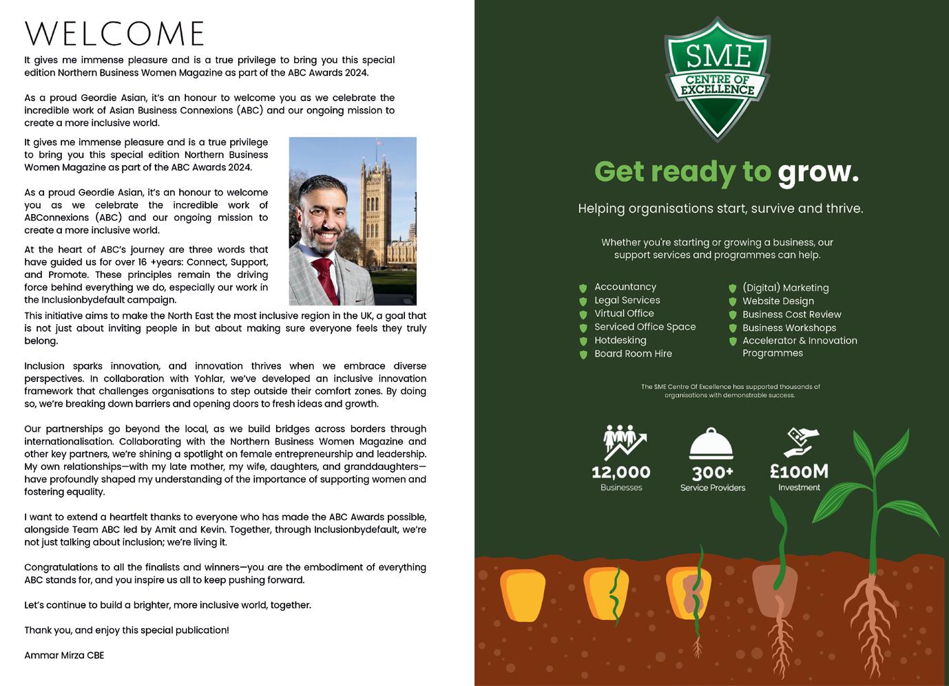 The views expressed by the contributors are not necessarily those held by the publishers and therefore, no responsibility can be held by the publisher for misinterpretation. Reproduction of this magazine without the express permission of the publisher is prohibited. Whilst every care is taken in the production of this magazine, the publisher/editor and staff cannot accept any responsibility for errors in articles, advertisements or programme schedules. To subscribe to this magazine contact 07711 539047 or email editor@northernbusinesswoman.co.uk. Published by Ghost Publishing who decline all responsibility for advice given.