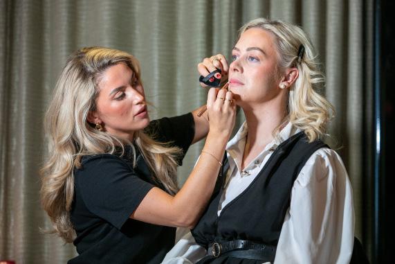Treats for our guests didn’t end when the delicious 2-course lunch was over and both guest authors had spoken. Our third guest was our new Yorkshire Businesswoman make-up columnist Frankie Falkingham who brought along her beauty kit, not only to chat to members and guests about the best way to apply makeup, but to do a complete makeover for new Yorkshire Businesswoman member Joelle Mountain from Cedar Court Hotel. You can read Frankies column on page 60.